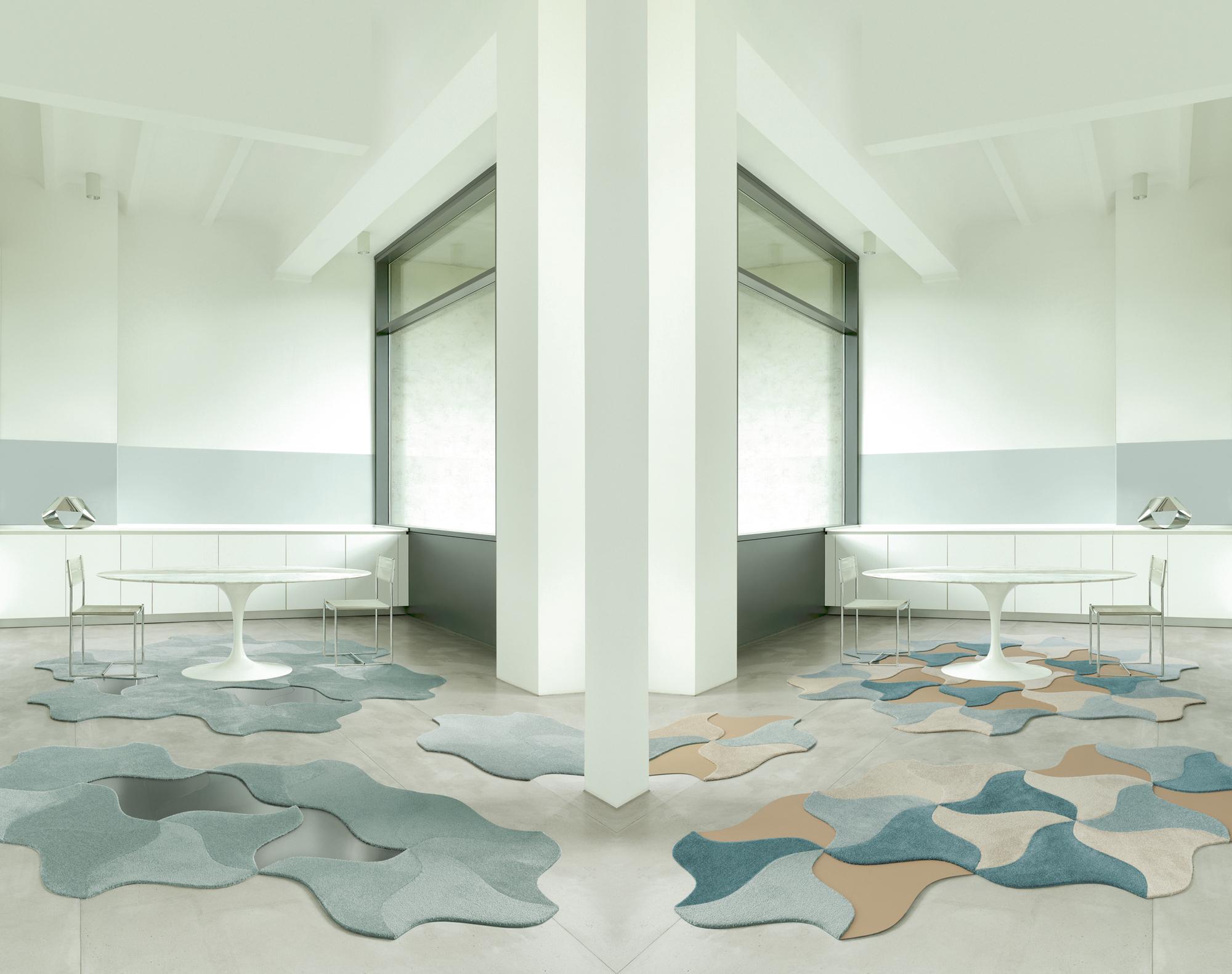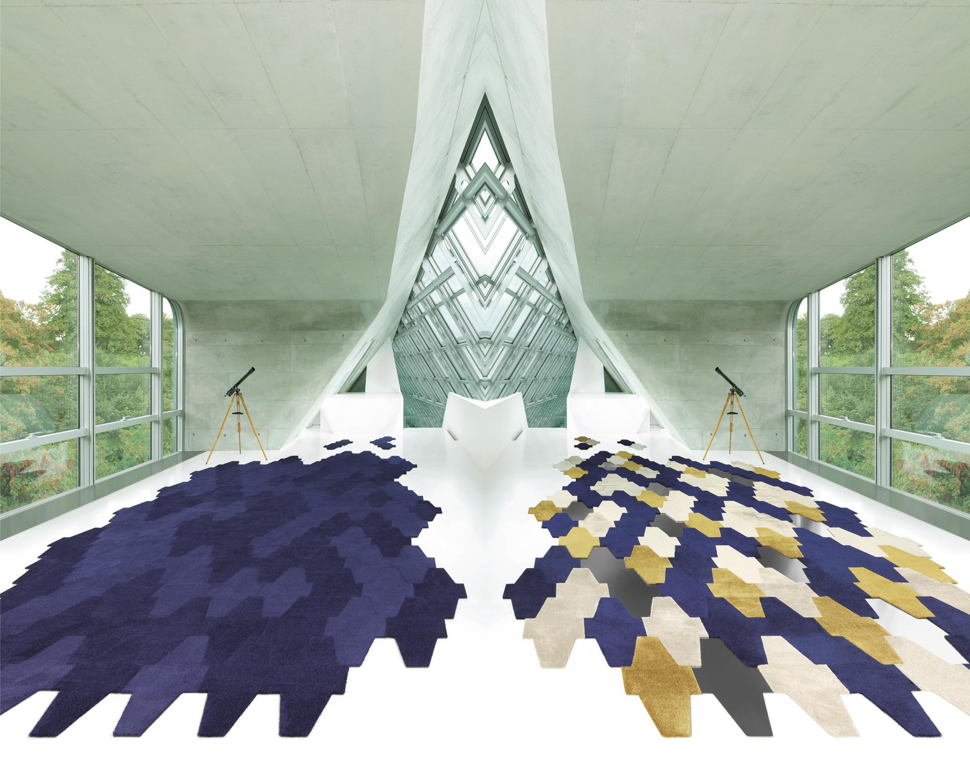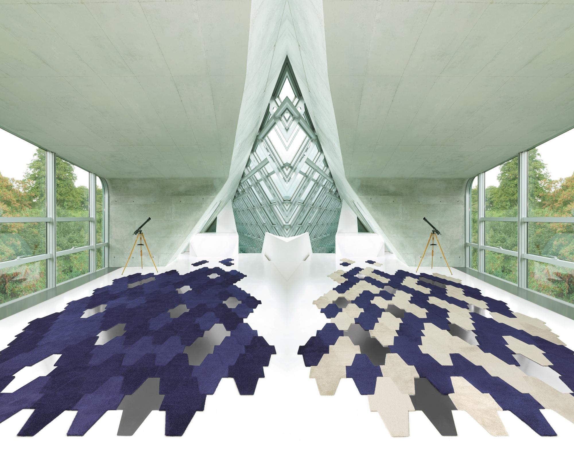 Carpet tile collectionHow diversely usable systems originate through the intelligent combination of architectural thinking and the logic involved in series production was already made clear in the SCALE / FreeSCALE collections for Vorwerk. SCALE Living makes the principle of the freely shaped carpet tile accessible to users in the private-sphere sector. Thanks to a patented backing the carpet modules are installed without adhesives or tools and remain removable. Selected colours and materials, such as leather and brushed stainless steel, testify to the collection’s fanciful approach.