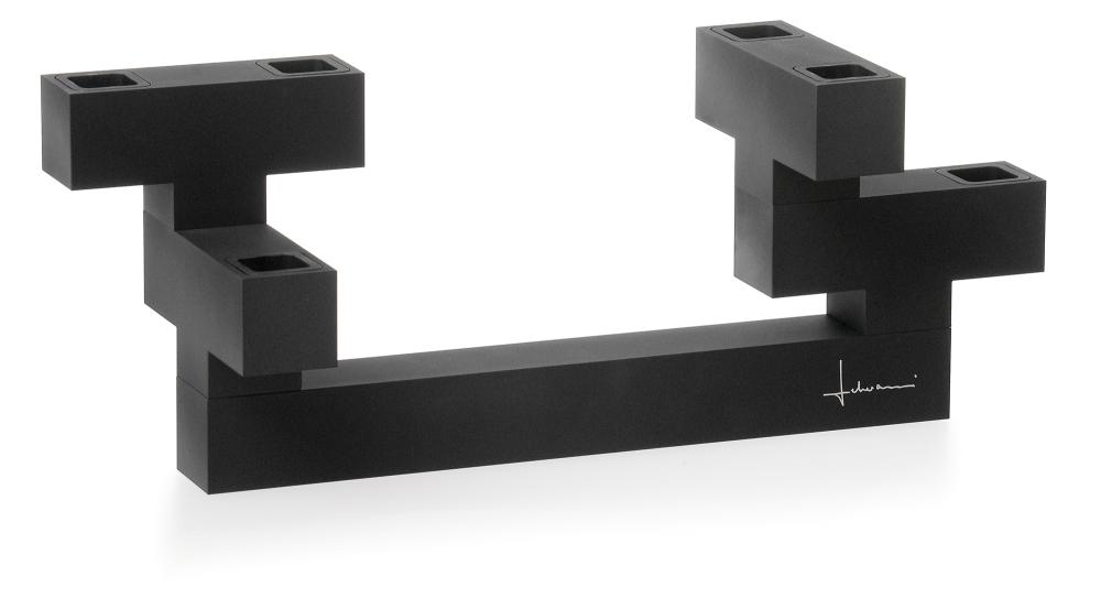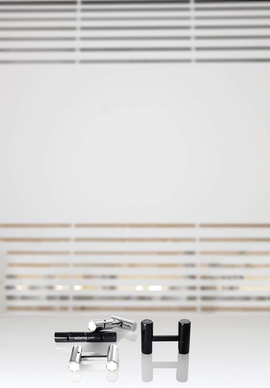 CufflinksThe smallest product designed by Hadi Teherani thus far is a set of cufflinks for the Tribute to Architecture collection from Montblanc, a limited number of which were released for sale. A quite personal project in fact, as Teherani always wears shirts fitted with French cuffs. Two models arose in the course of co-operative work on the part of the company and architect, both based in Hamburg. Much the same as with his buildings, he utilises steel and glass for his modern but by no means trendy jewellery. This particular model, cylindrical bars entitled “Sticks”, borrows from the cob-like shape of a fountain pen.