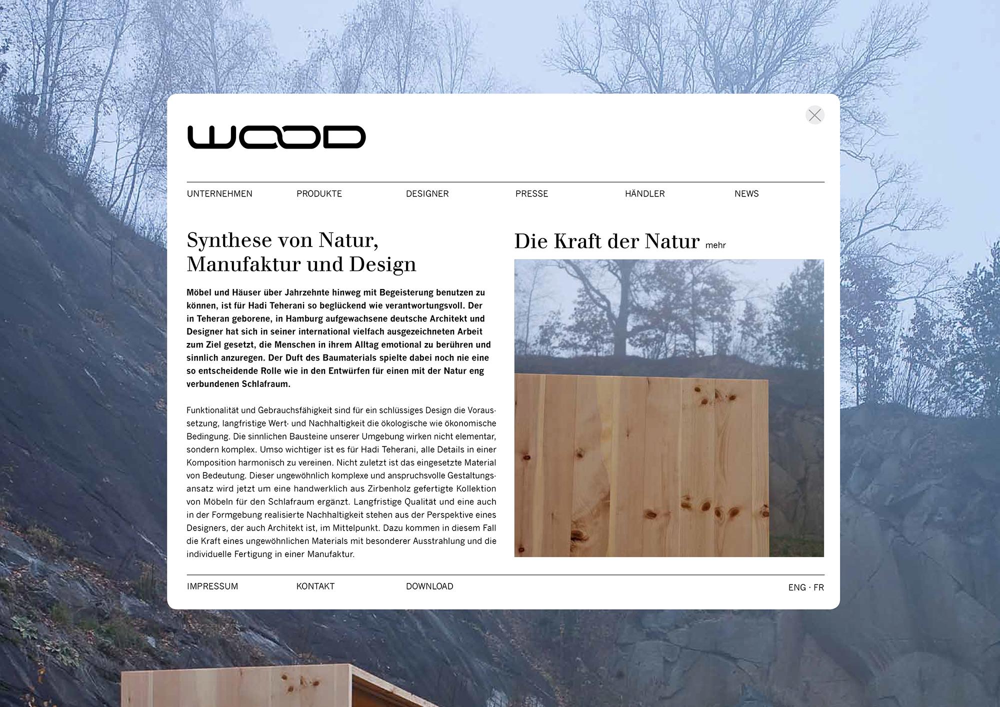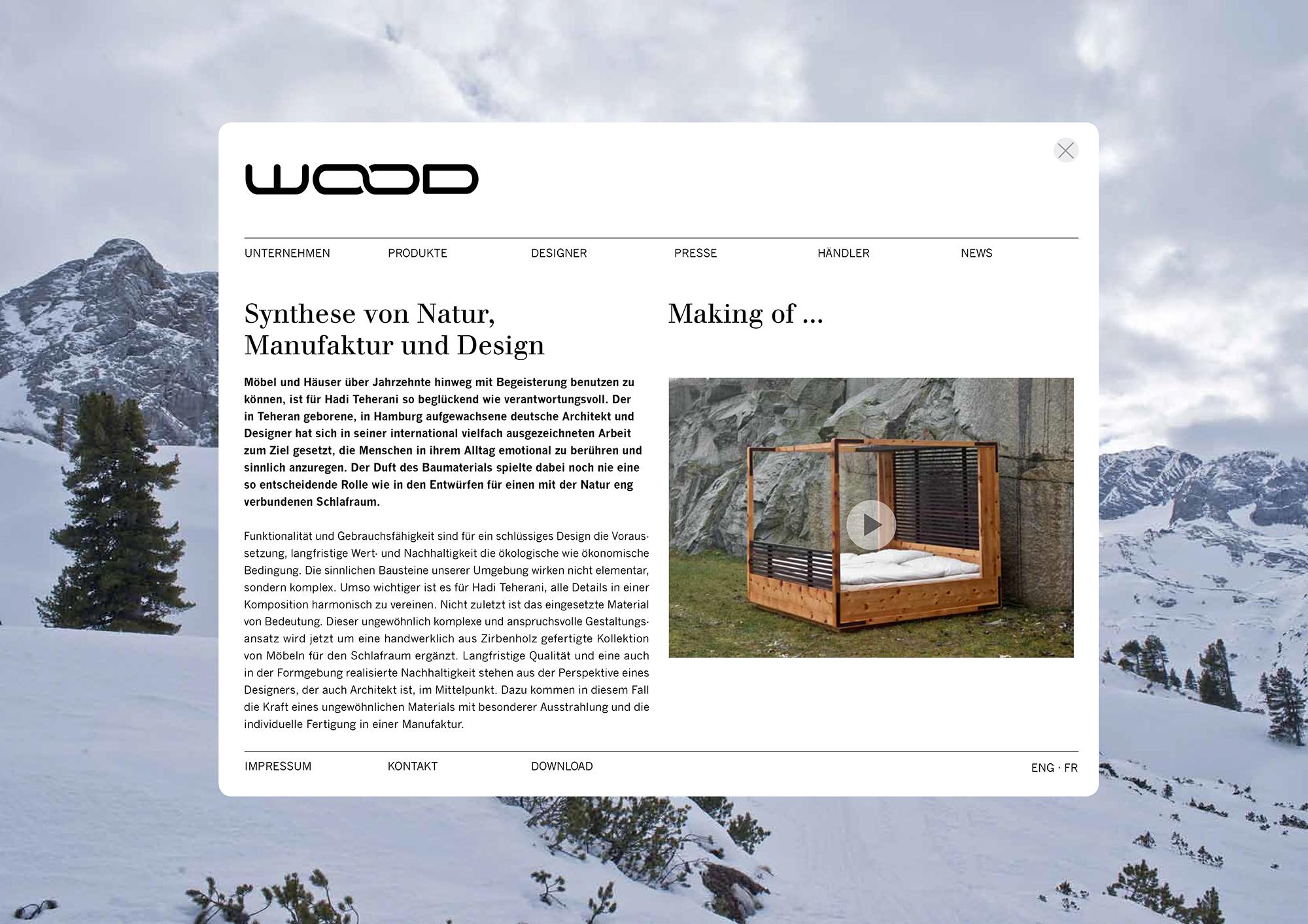 With the rare, natural product Swiss stone pine, Wood creates this liberating and spurring atmosphere even in the bedroom. The digression into nature becomes a daily ritual. Sleep, the best form of relaxation, combines with the power of nature. Daily deceleration promises health and a long life.
