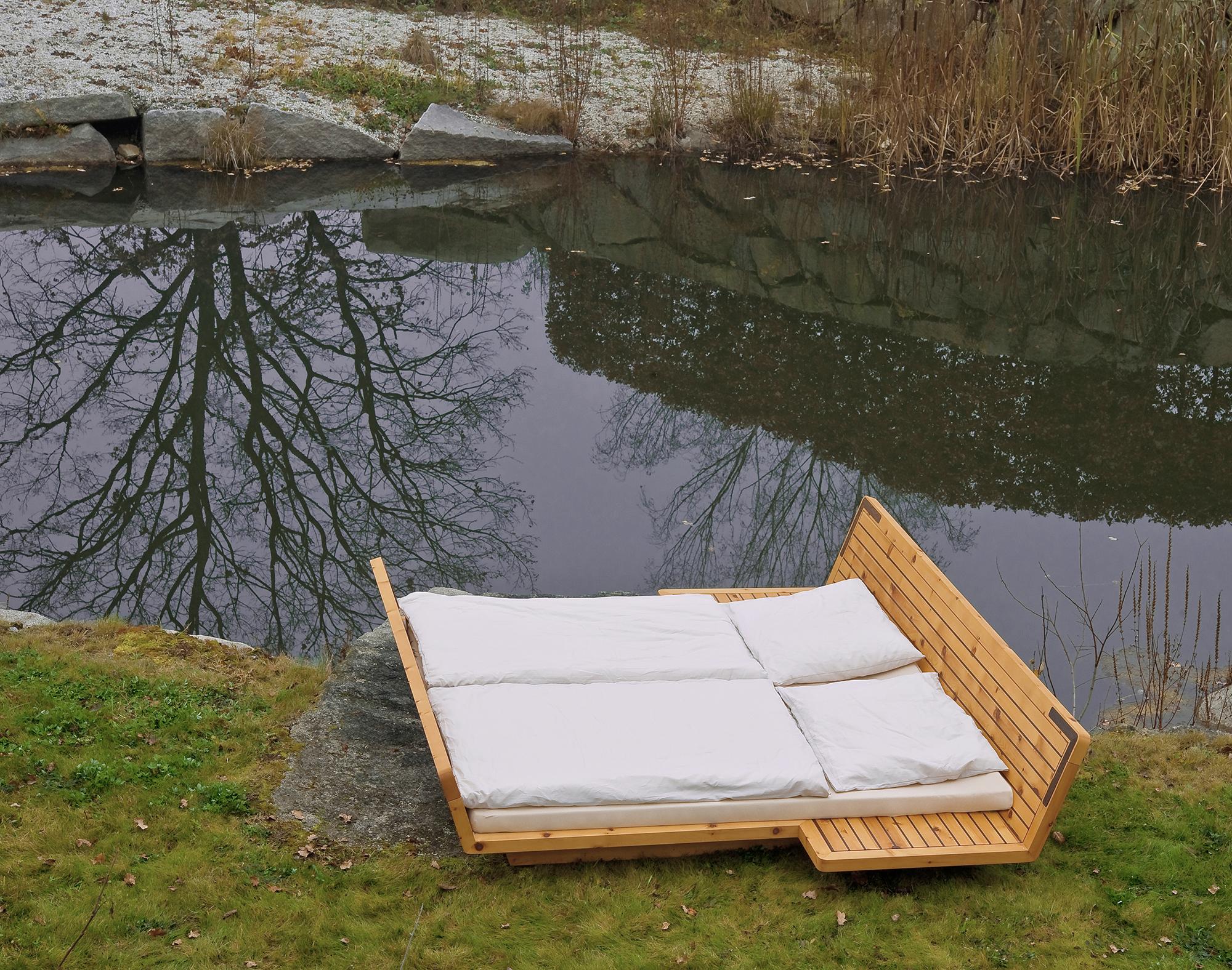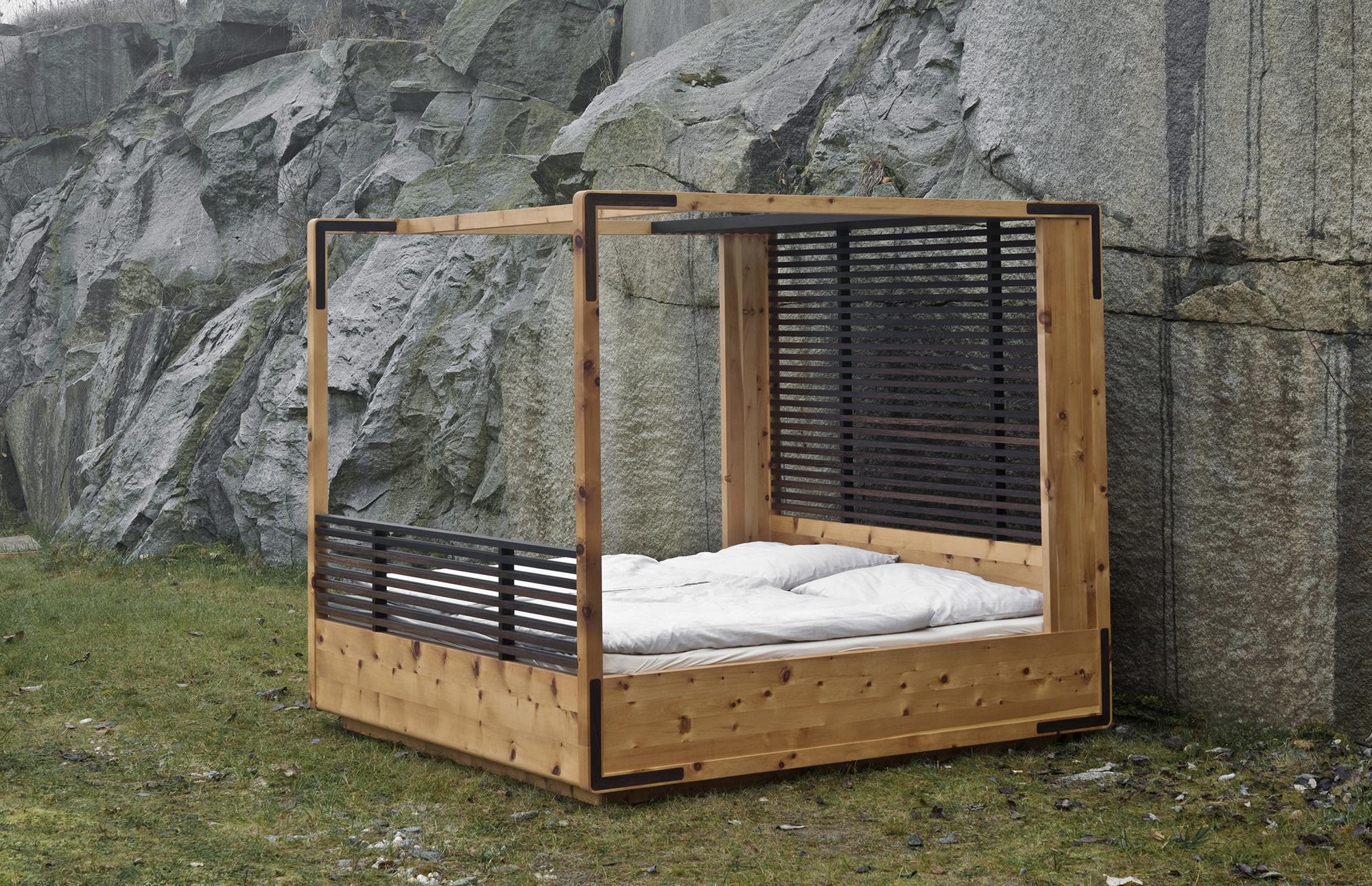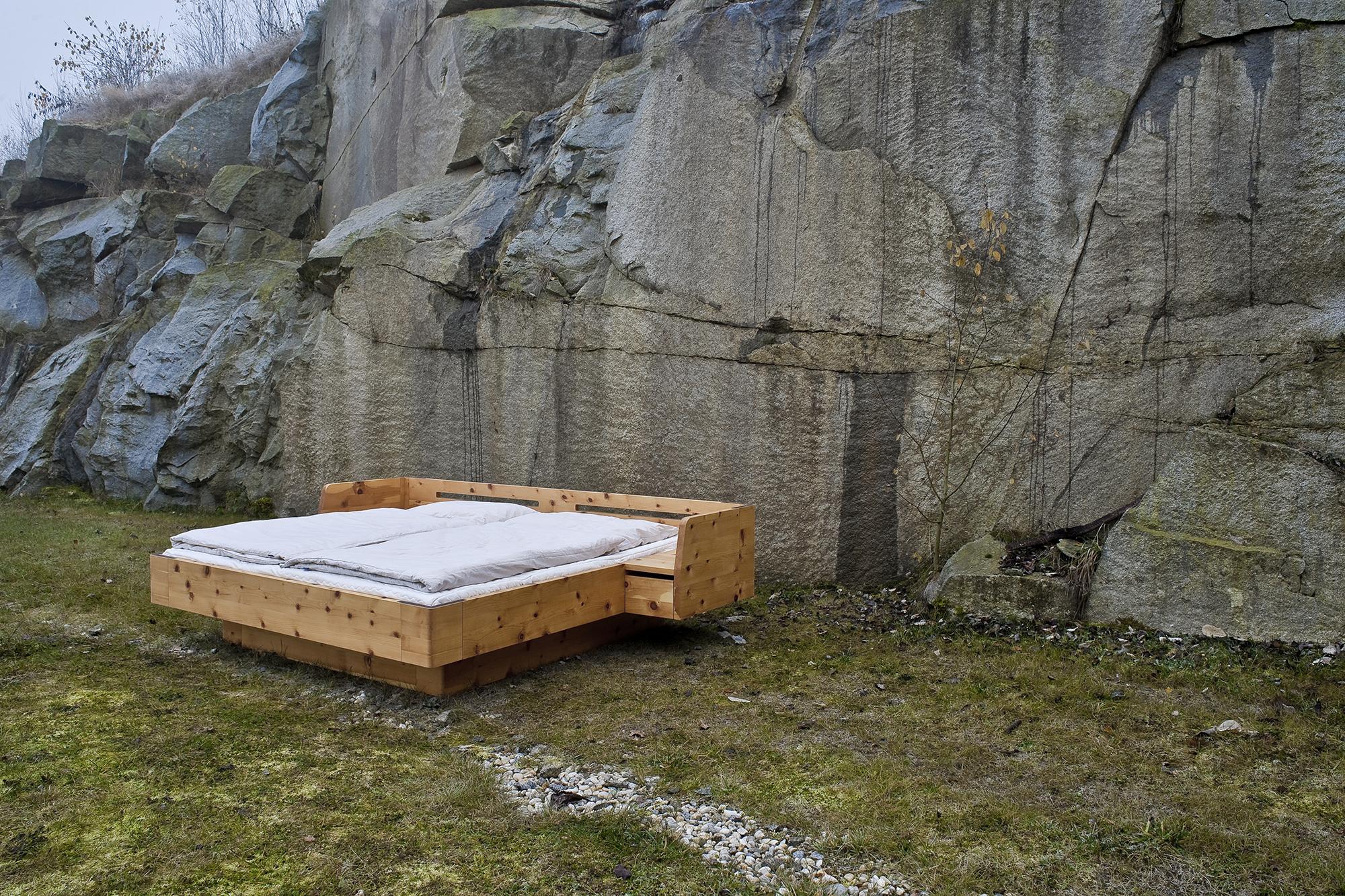 Swiss pine furnitureWOOD covers the whole repertoire of a bedroom. Three different beds are available for very different formal and functional requirements. ELEMENT #196 creates a room-in-a-room and in its three-dimensional image conveys a particularly strongly pronounced form of "dreamlike" security in the truest sense of the word. Here, the tradition of the four-poster bed, already popular in the Middle Ages, finds an absolutely modern and contemporary continuation. ELEMENT #196 consists of 196 parts. In more economic dimensions, ELEMENT #58 reduces the motif of emotional security to a niche at the head end, fitted with drawers and spatially only hinted at. On the other hand ELEMENT #98 pursues the dynamic and the vision of a voyage, and thus perhaps best symbolises the impetus gained during sleep. There are so many arguments in favour of every bed that the decision should be best based on the spatial possibilities and the storage space required. As supplements the collection includes the wardrobes ELEMENT #325/#487 with two and three sliding doors, but also a bedside table, ELEMENT #17, a side- board, ELEMENT #120, and a bench, ELEMENT #68 - each in an identical material and a design canon, harmoniously in tune with the beds.