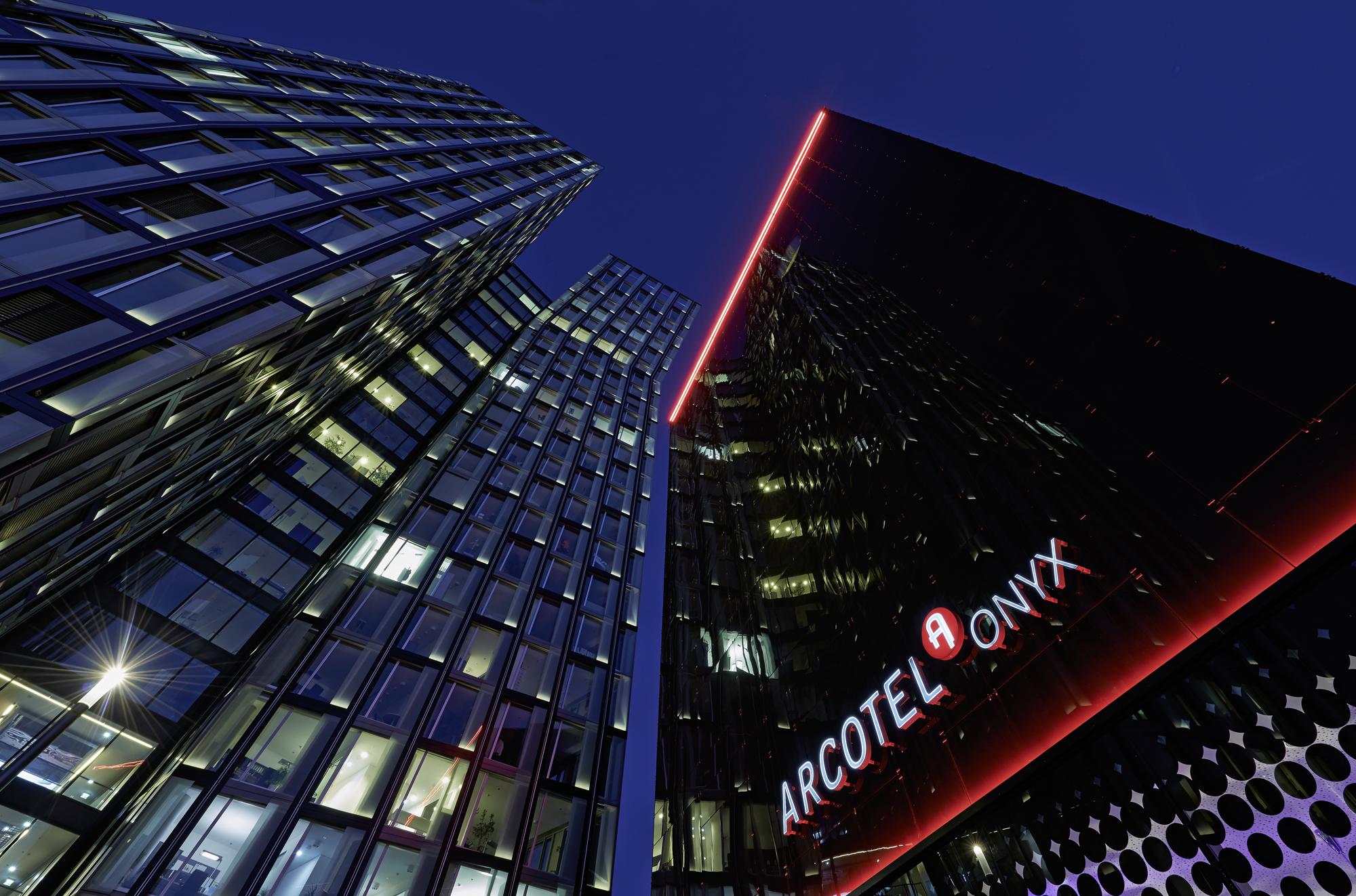 The southern structure along the street Beim Trichter comprises the 4-star hotel Arcotel Onyx. It is separated from the towers via approved literal partitioning.