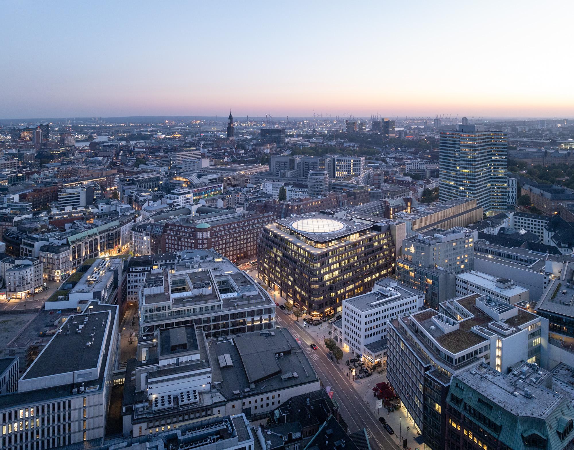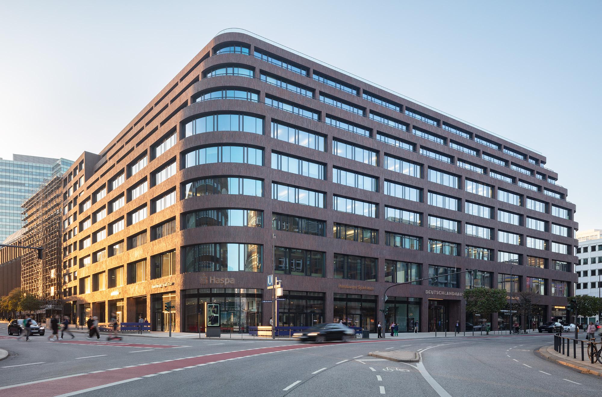 Office, commercial and residential buildingHamburg, GermanyThe draft for the new Deutschlandhaus complex on Gänsemarkt plaza was decided upon unanimously in a so-called “workshop process” involving five contending entrants. The further handling and adaptation thereof was closely co-ordinated and agreed with the city’s chief planning director, district administration and the municipal office for the protection of buildings and monuments with a historical heritage.