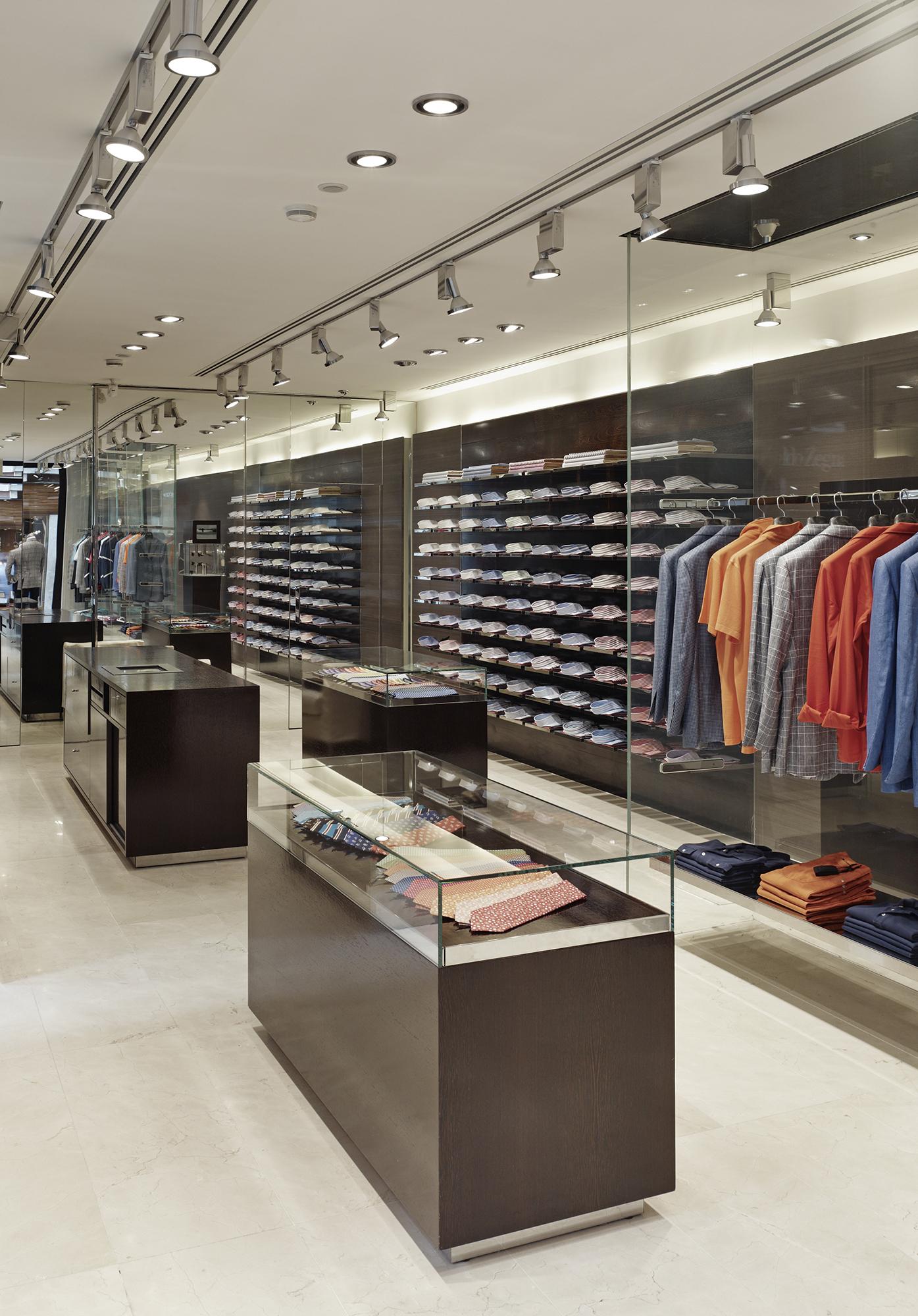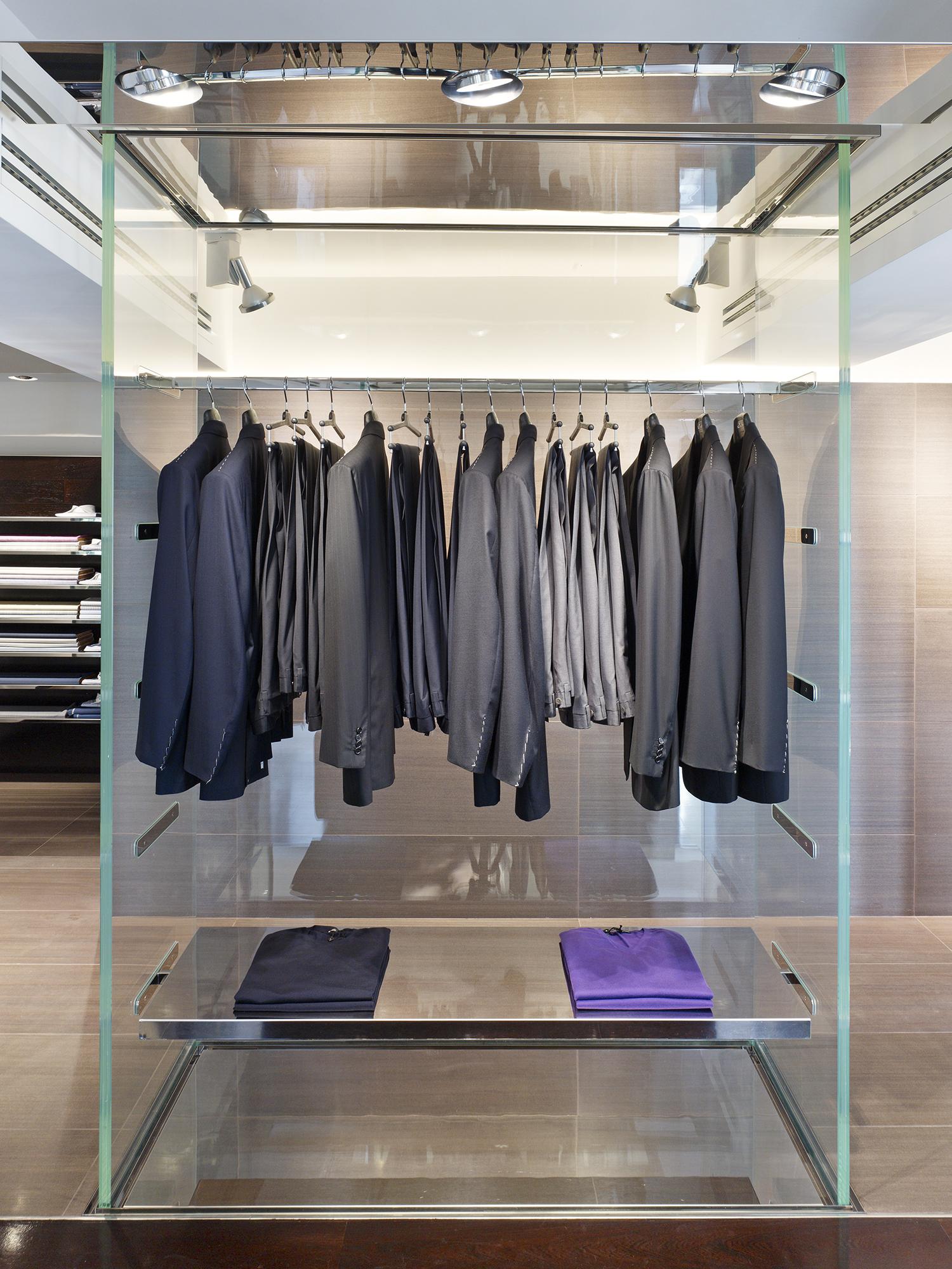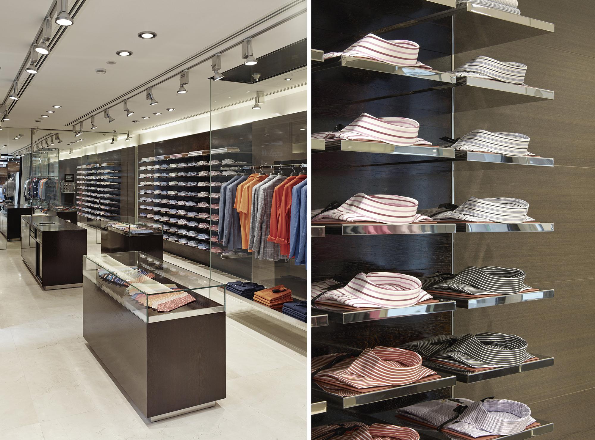 »Elegant showcase elements structure the interior, forming discreet frames for the Kiton collections «Hadi Teherani