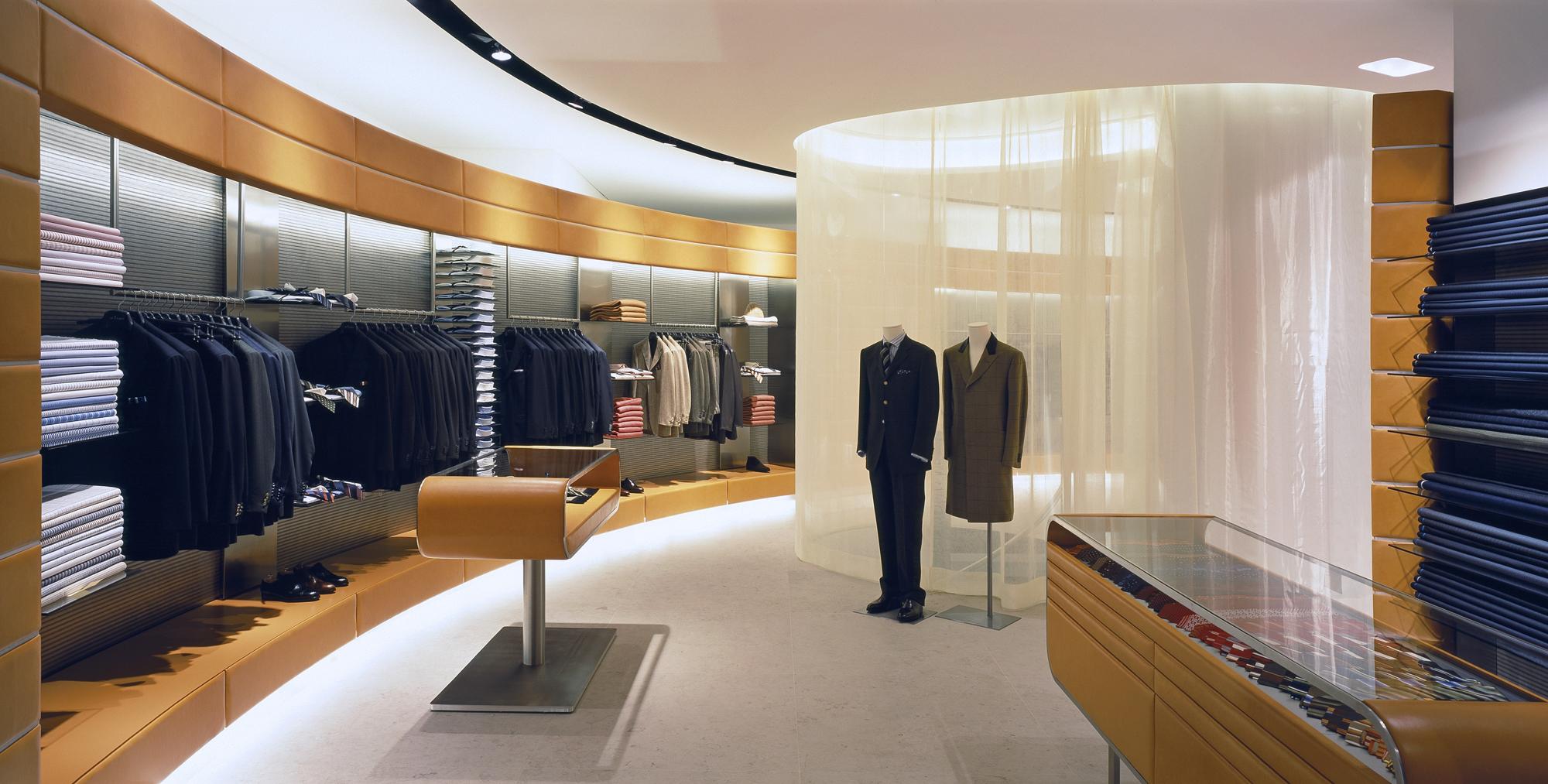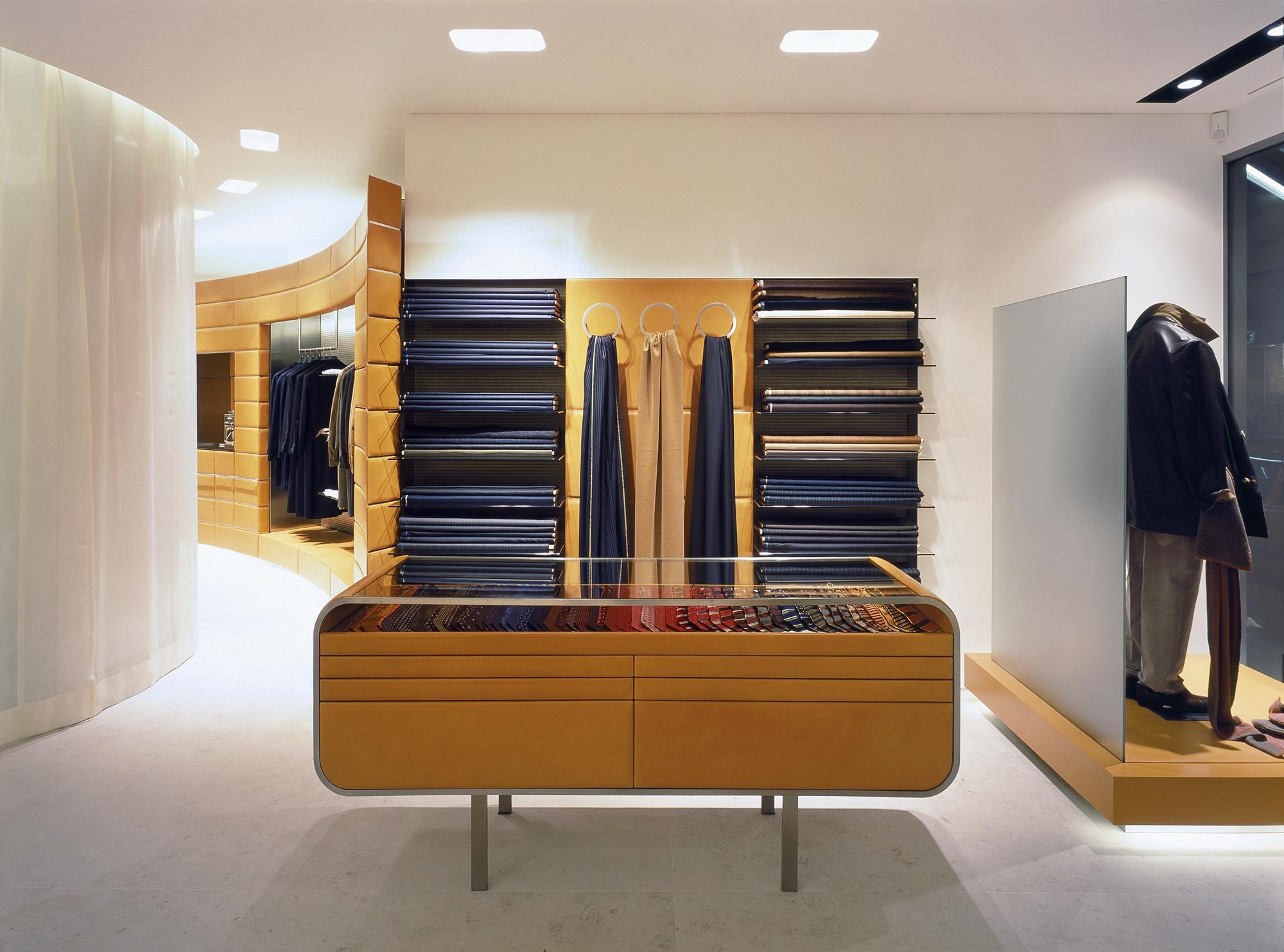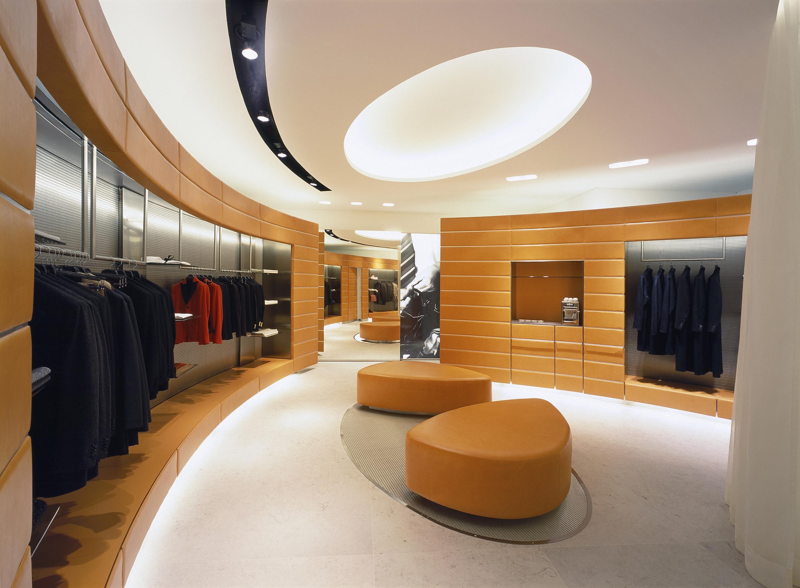 StoreDusseldorf, GermanyAt a prime location in Düsseldorf’s Kö-Center mall, orange-coloured walls upholstered in leather, spacious island seating arrangements and artfully recessed metal sheathing are used to transport customers into the world of luxury automobiles.