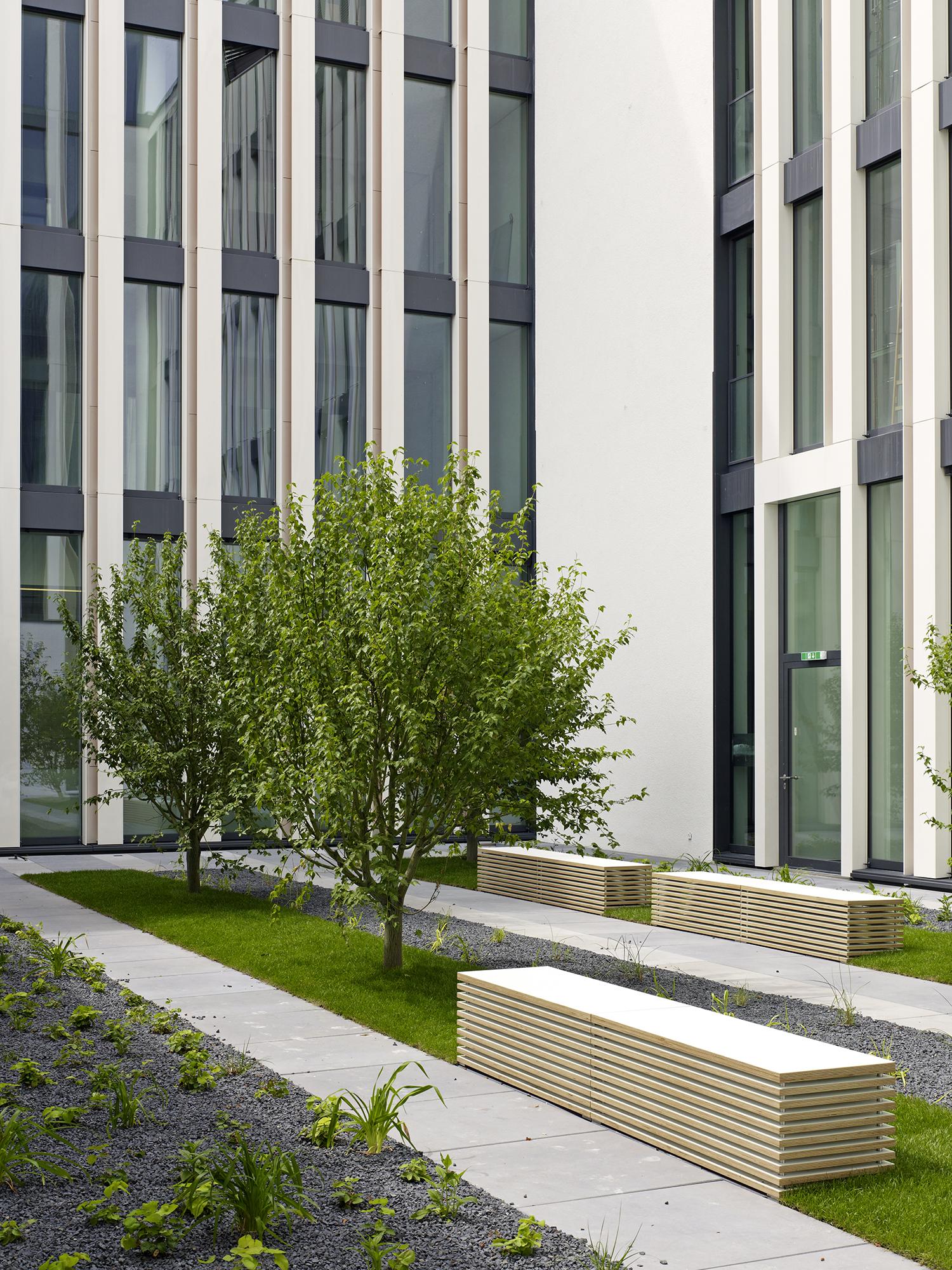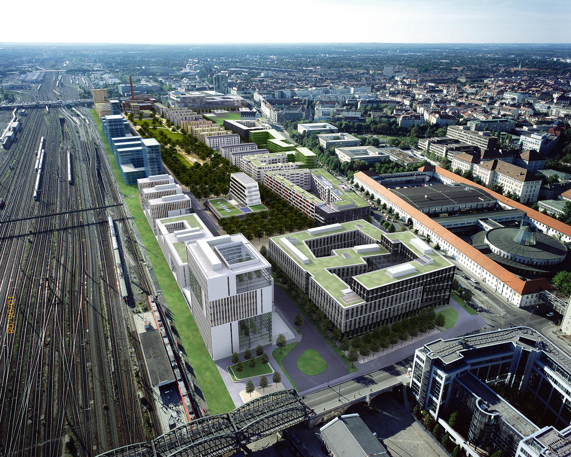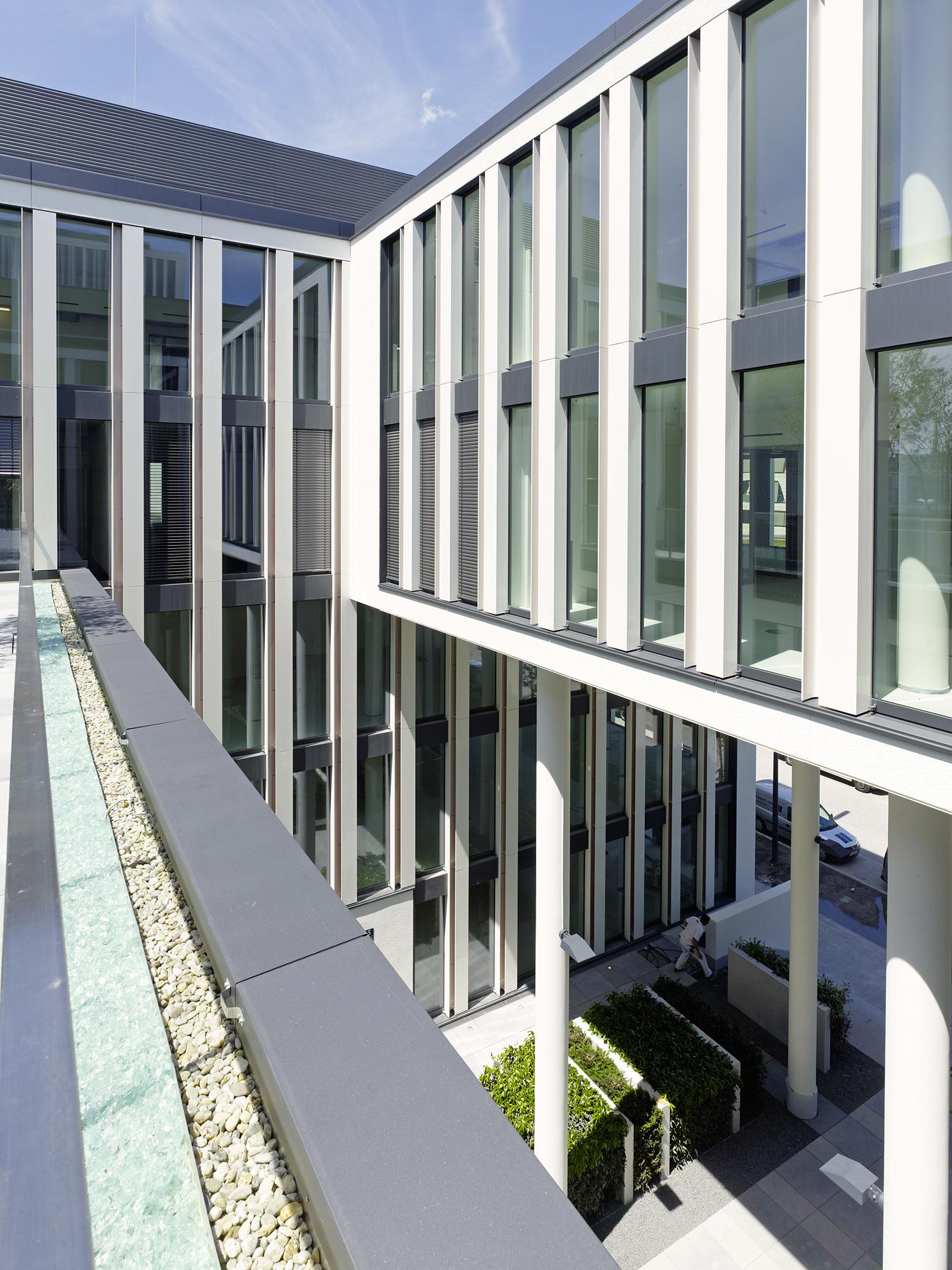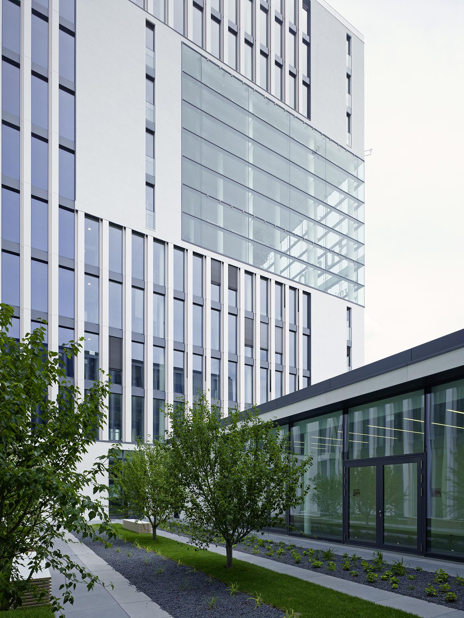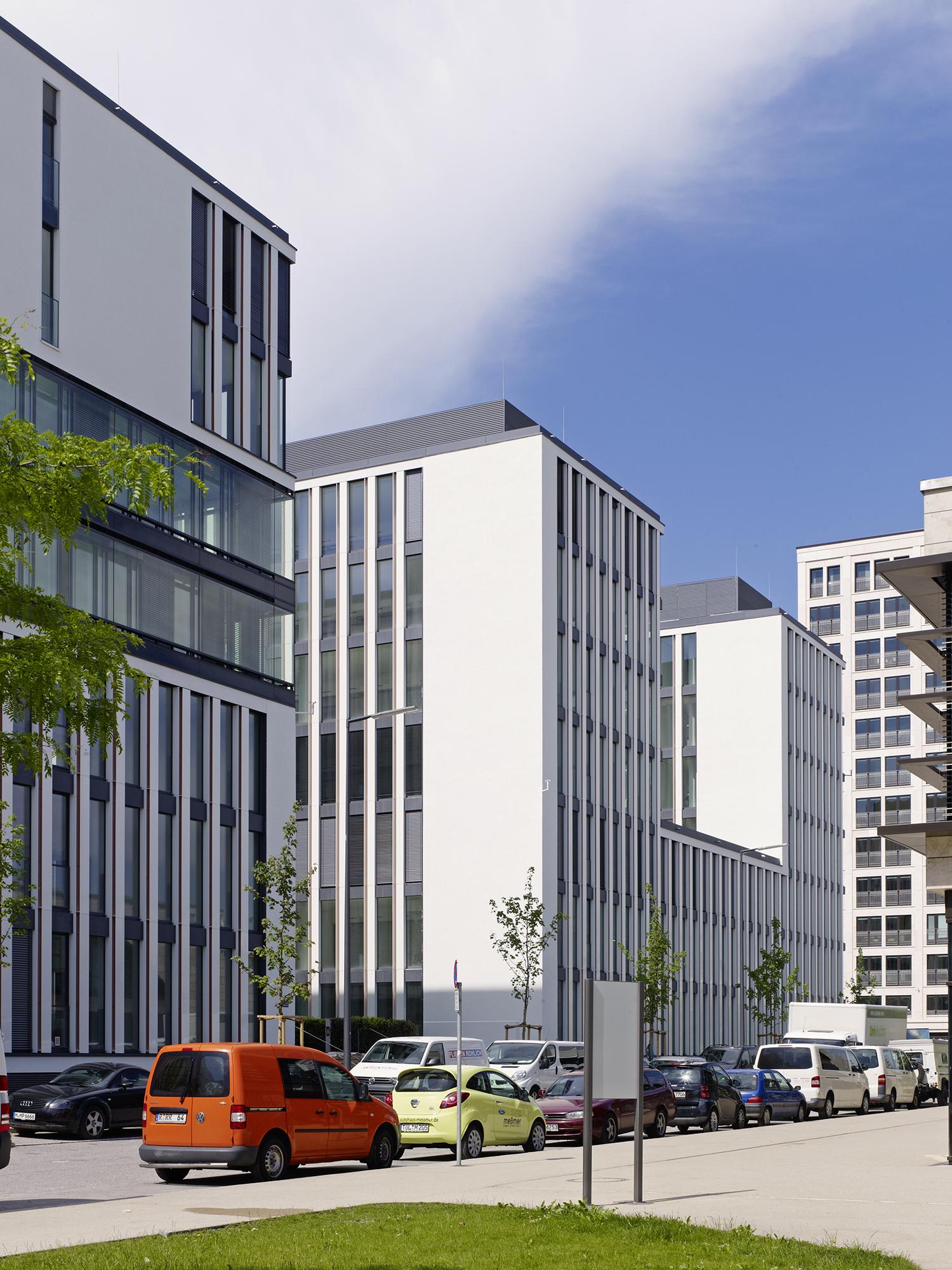 Office complexMunich, GermanyArnulfpark is one of Munich’s inner-city oases. The downtown district and main train station can be reached on foot, the Mittlerer Ring motorway and railway tracks lie in the immediate vicinity. The sustainability of the compact, urbane and green construction concept is equally documented in the four ‘elements’ characterised by Plato which have lent their names to the different quarters encompassing the park: fire, water, earth and air. The Skygarden, a central component of the quarter named Air, interlinks spacious courtyards with broadly spaced atriums and loggias, so that the office spaces are located not only within the greenery at ground level. Over 50 per cent of energy demand is covered via regenerative sources.