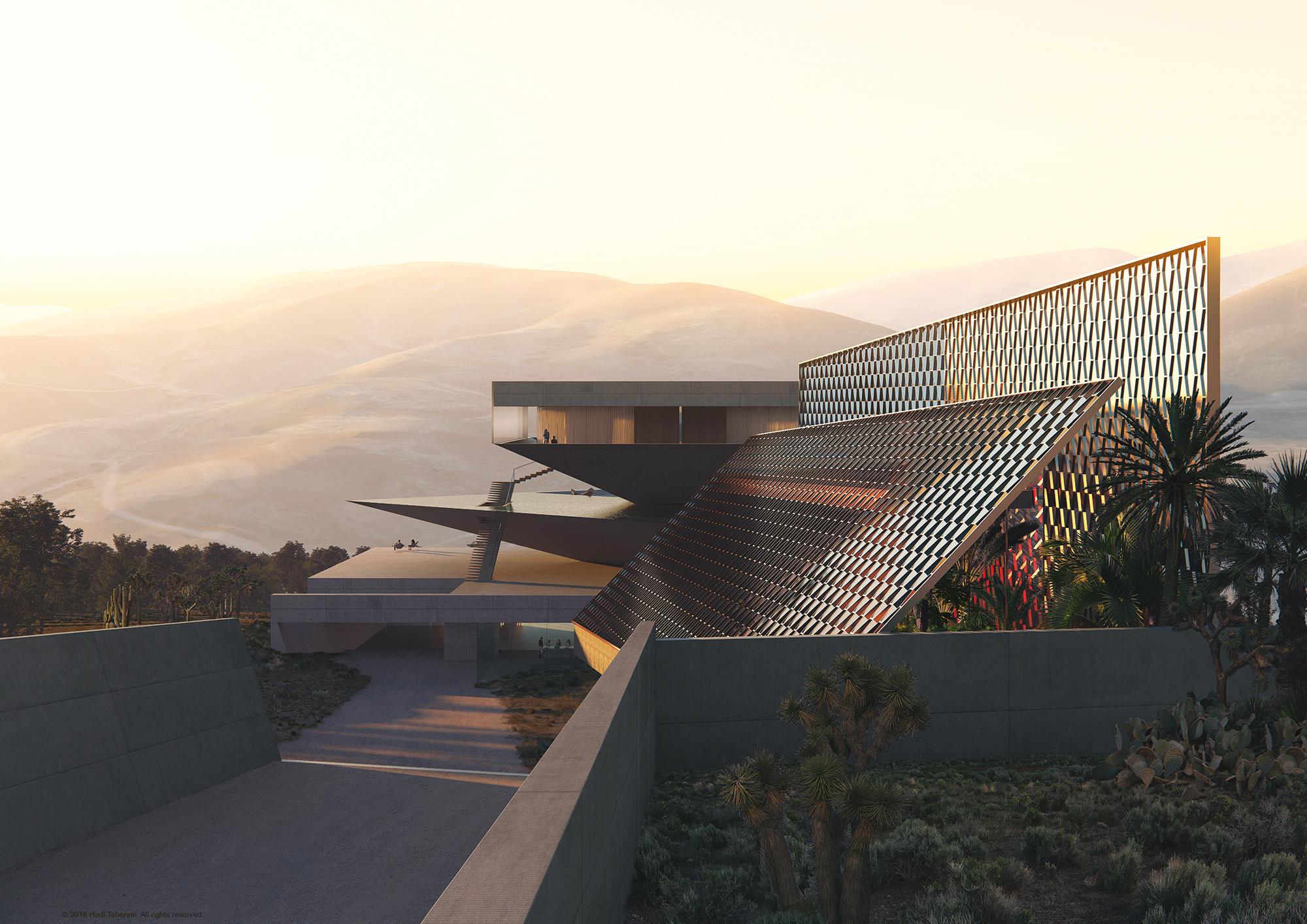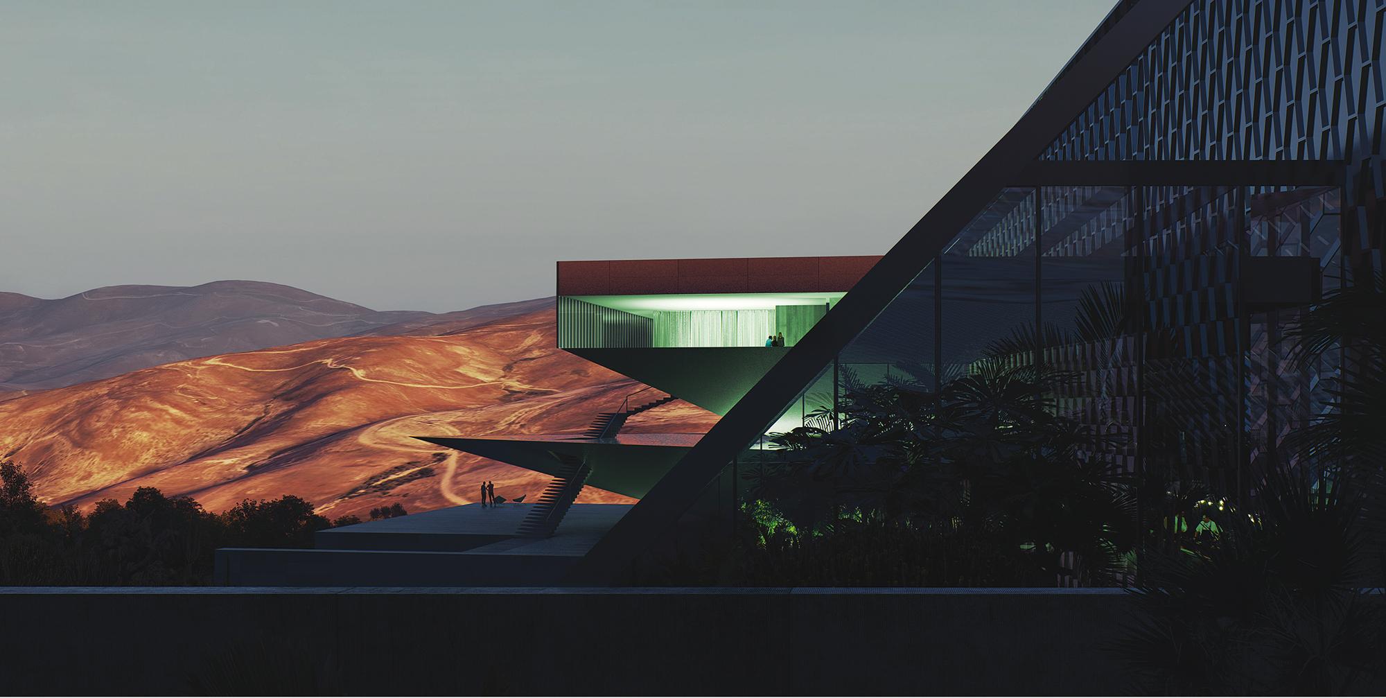 Residential buildingTehran, IranIranians are fond of referring to the Lavasan district as the ‘Beverly Hills’ of Tehran. Even more spectacular than the stately villas of Lavasan is the magnificent vista: mountaintops that stretch all the way to the horizon. And yet, this building ‘collaborates’ with its special site: it has been designed in a manner that architecturally underscores the incomparable view, enhances it and highlights its qualities to a maximum. In synthesis with the native flora, a miniature natural paradise is created that provides room for recreation and relaxation. The materials and nature itself act as the two main protagonists in the draft design: glass, steel and concrete are used over large surfaces. The elegant minimalism they display allows the greenery of the garden paradise arrayed across the property with an area of 27,000 square metres to emerge in even greater contrast. The same is true of the botanical garden in the building adjoining the villa. Nestled into the sloping hillside, the annex integrates itself ideally into its surroundings. As a result of cantilevered plateaus protruding broadly outwards the villa’s individual levels seem to float in space, giving the design a dynamic, airy silhouette and the villa’s structure the lingering feel of a breath of science fiction.