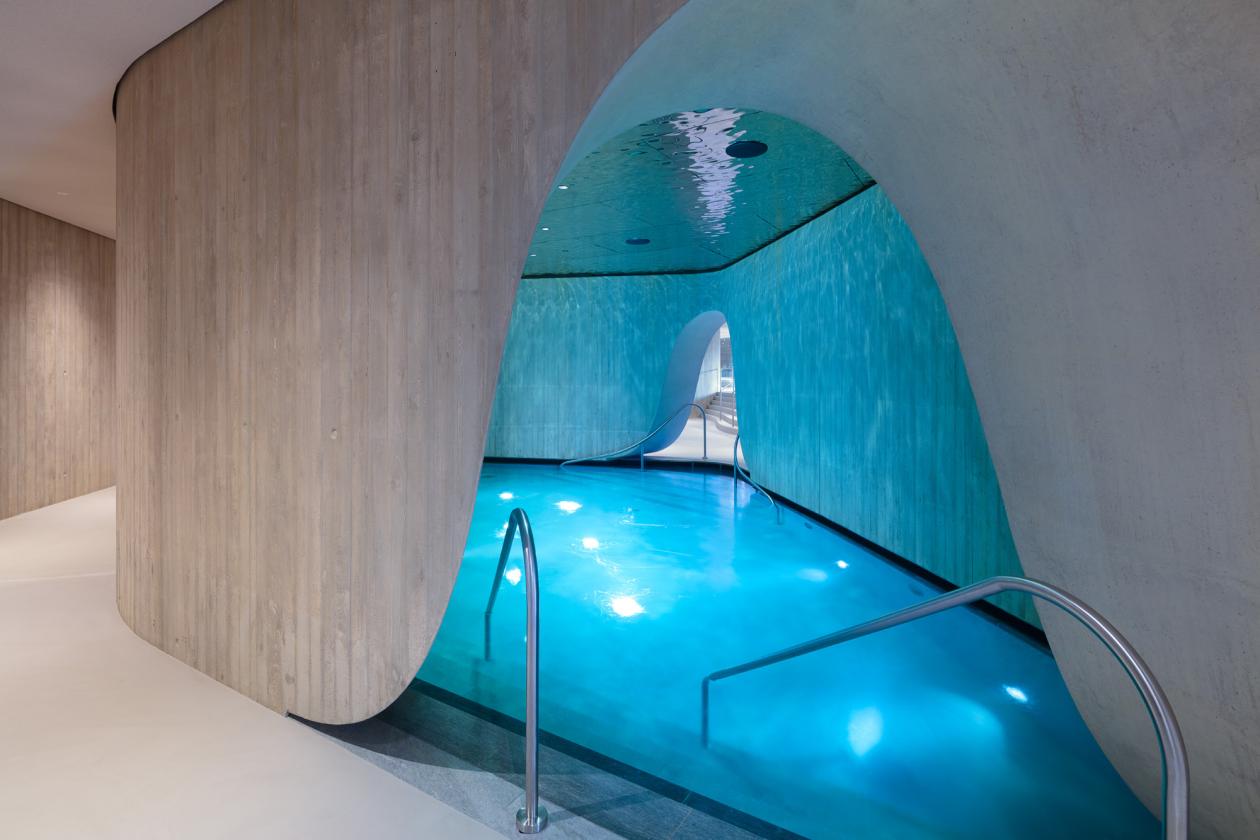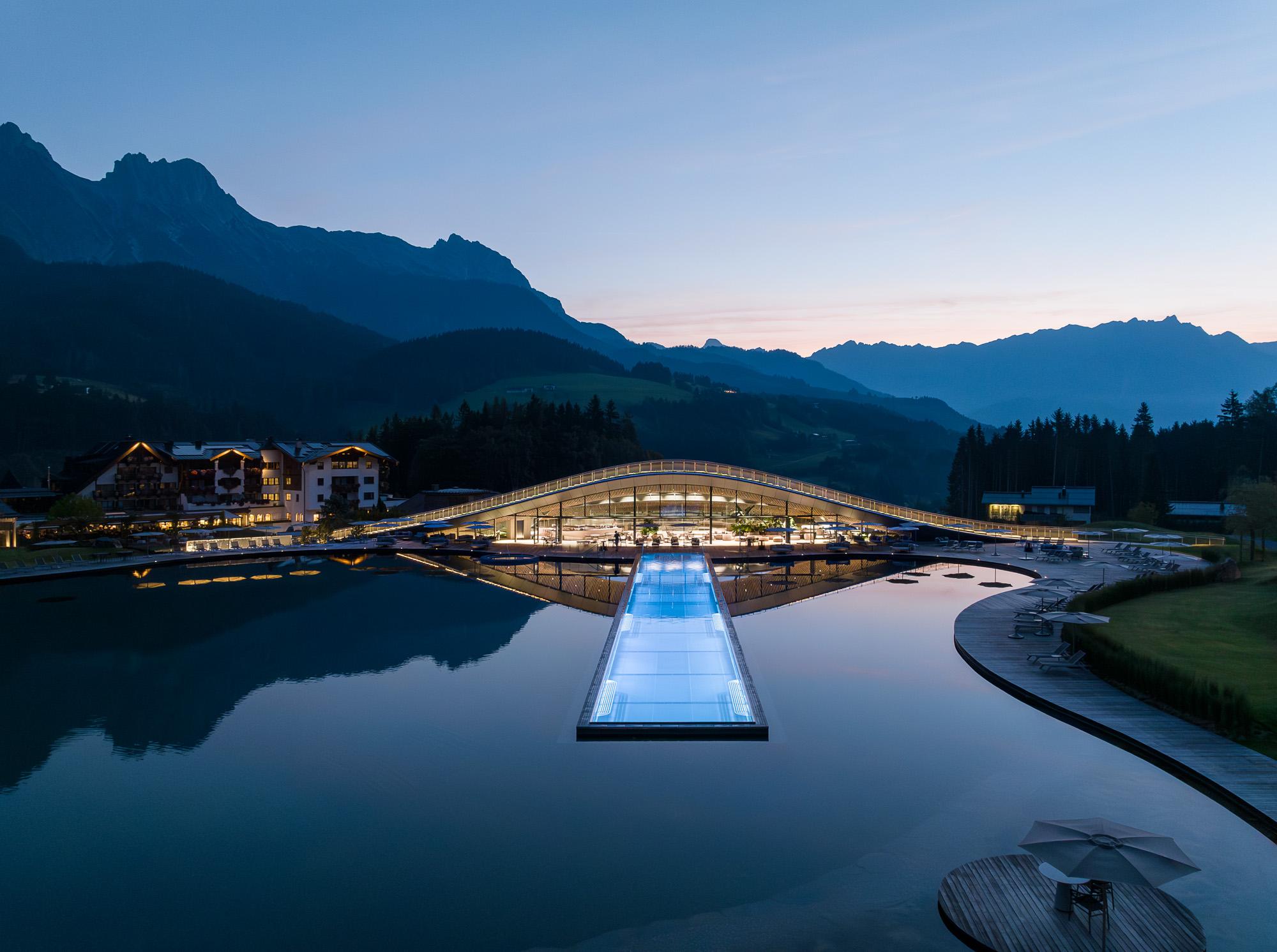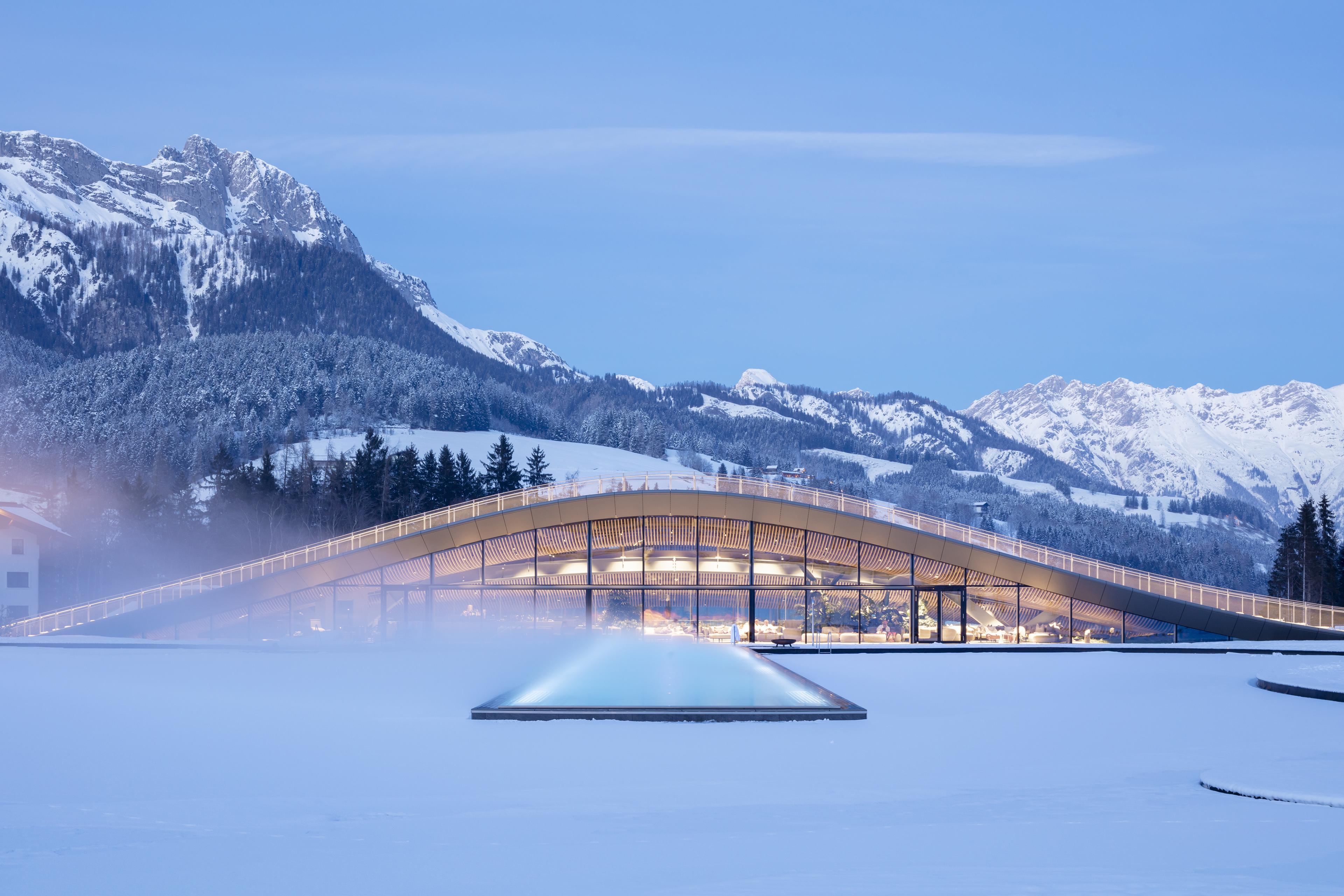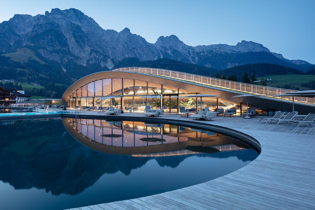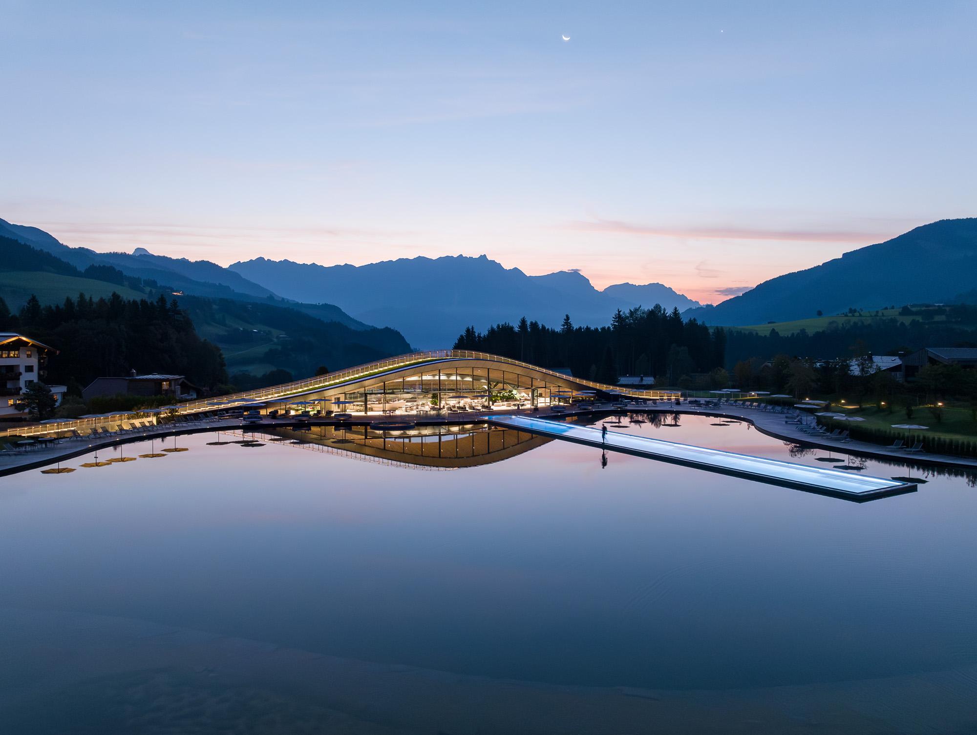 Die von Hadi Teherani Architects geschaffene SPA- und Wellnessanlage “Atmosphere by Krallerhof” erweitert das Fünf-Sterne-Hotel Krallerhof in Leogang, Österreich, südlich von Salzburg. Das im Namen der Familie Altenberger geführte Hotel schließt damit an seine vor 600 Jahren begründete Tradition der Beherbergung im Luxussegment an und findet mit den neuen Elementen SPA und Wellness seinen neuen Weg in die Zukunft.