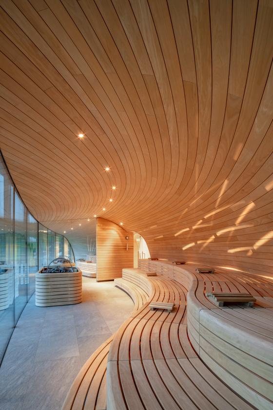 SPA- und WellnessanlageLeogang, ÖsterreichFür dieses Prestige-Projekt haben wir uns in einem internationalen Architekturwettbewerb erfolgreich durchgesetzt. Mit der Vision eines SPA, der sich trotz Größe und Dimension organisch und harmonisch in die Bergwelt einfügt und ganzjährig Raum für eine innovative Art der Regeneration und Inspiration schafft. Hadi Teherani: „Ich wollte ein Gebäude schaffen, das sich dieser wunderbaren Landschaft unterordnet, aber trotzdem präsent ist. Ein stilles Erlebnis von großer Eindringlichkeit, ganz besonders im 50 Meter langen Infinity-Pool, eingebettet in einen großen See und die Weite dieser einzigartigen Landschaft."