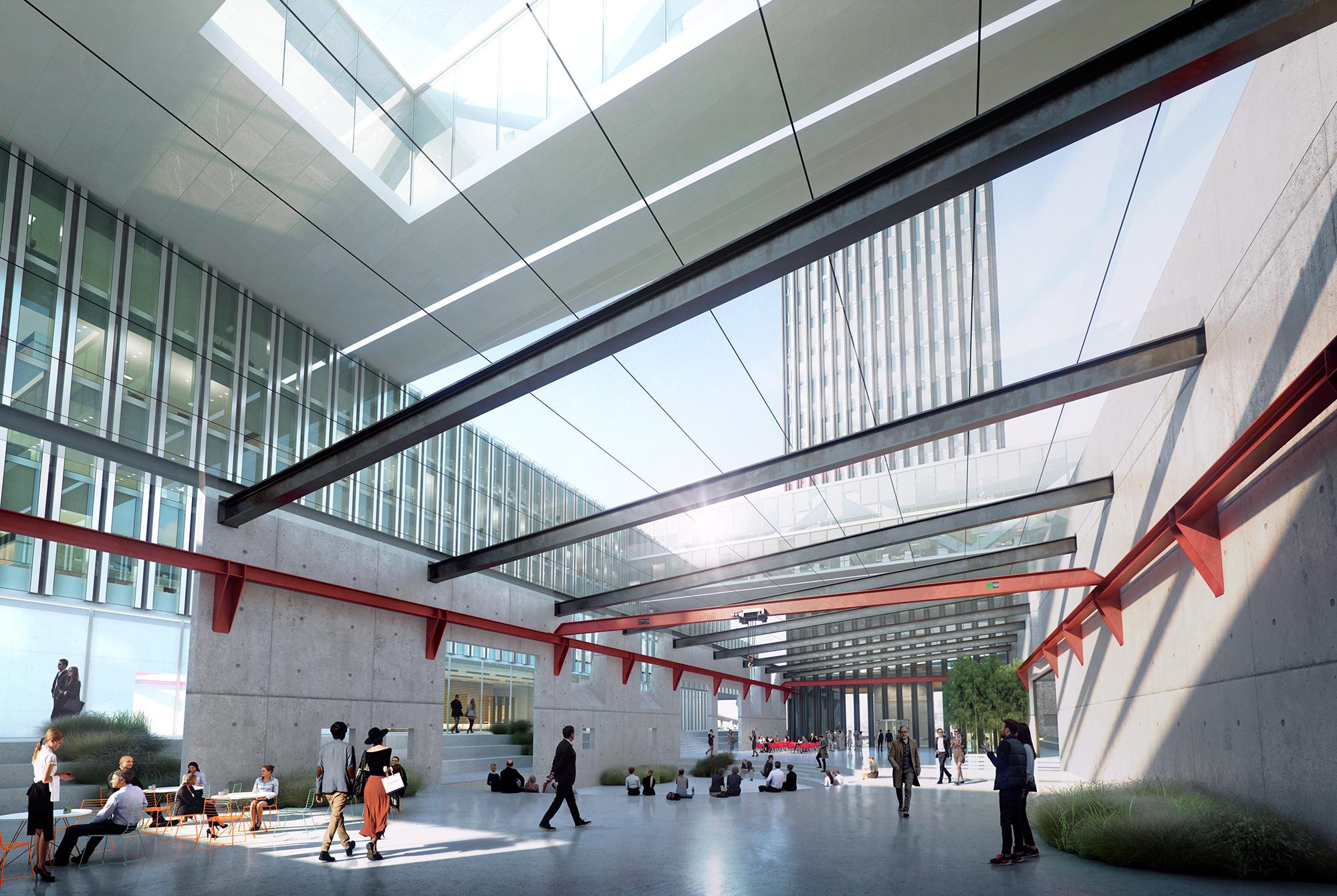 HADI TEHERANI dazu: „Der Charme und das Besondere des Harburger Binnenhafens liegt in seiner heterogenen Struktur. Alte Fachwerkhäuser und industrielle Hafenanlagen - teilweise noch aus dem letzten Jahrhundert - stehen Seite an Seite mit modernen Großstrukturen. Die Idee unseres Entwurfes ist es, diesen einzigartigen industriellen Charakter, der weit über die Grenzen Hamburgs strahlt, zu bewahren und zu unterstreichen. Daher haben wir uns auch entschieden, die Werkhalle auf dem Areals von HC Hagemann zu erhalten, zu entkernen und als neuen Haupteingang des Hamburg Innovation Port zu einem multifunktionalen Ort mit Piazza, Café, Veranstaltungsbühne und Grünanlagen um zu gestalten. Industrielle Strukturen treffen hier auf moderne Architektur und stellen als Symbiose das nächste Kapitel in der Entwicklung des zukunftsträchtigen Harburger Binnenhafen Areals dar.“