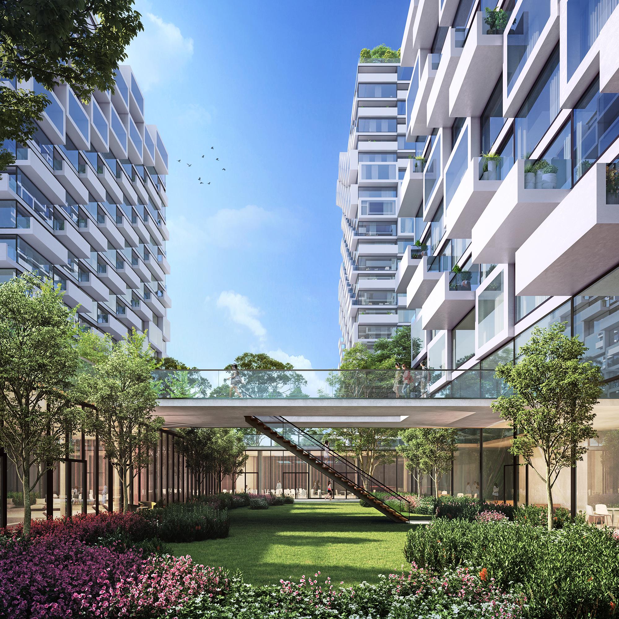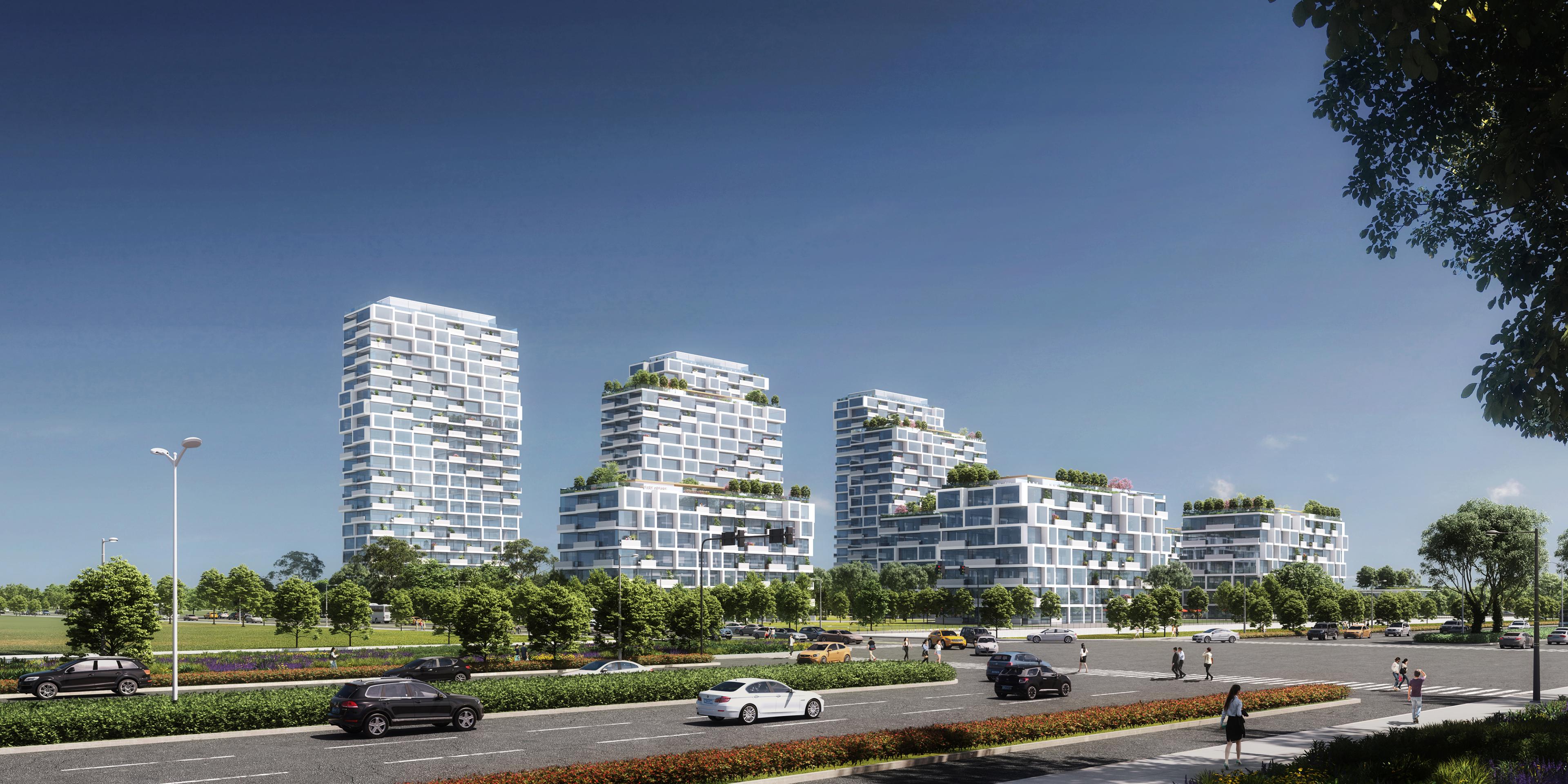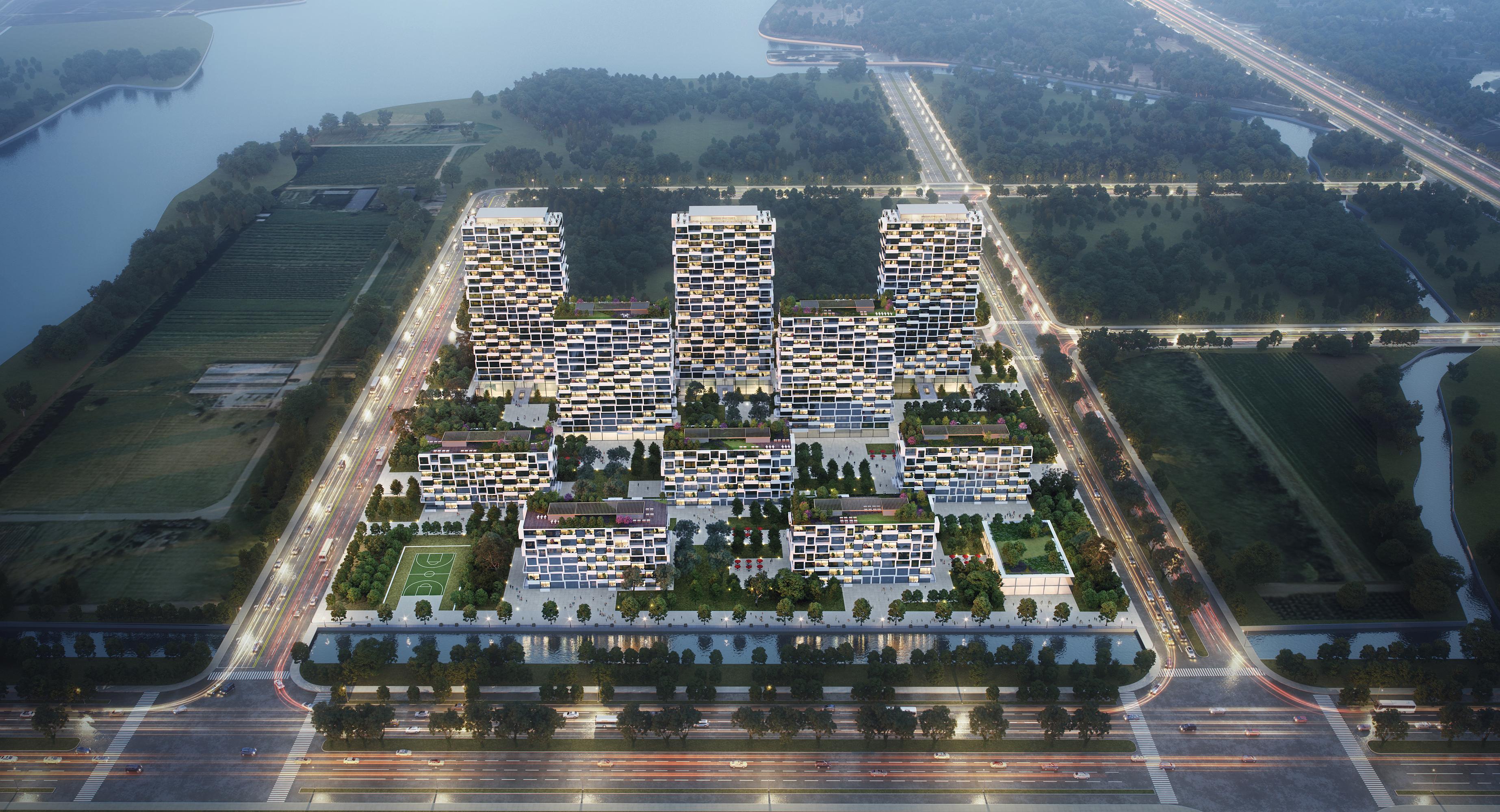 Wohnhäuser, Spa und RestaurantsShengze, ChinaDas Projekt Shengze Town Residencesbildet ein modernes Quartier direkt am Fluss. Die Grundstücksfläche beträgt ca. 60.000 m² mit einer BGF von ca. 100.000 m². Insgesamt werden rund 500 Wohnungen in drei Kategorien gruppiert, die durch ihre Höhe definiert sind: High, Mid und Low-Rise Apartments. Eine Mischung aus Zeilen und Punkthäusern, die schachbrettartig angeordnet sind, um ein Maximum an visueller Offenheit und Sonneneinstrahlung zu erreichen. Jedes Gebäude ist in seinem Design einzigartig, da ein „spiralförmiges Band“ das Fassadendesign durch das Hinein- und Herausschieben von Balkonen und Skyboxen aus der effizienten, rein rechteckigen Grundplatte leitet. Bereichert werden die Wohnstrukturen durch eine Reihe von Annehmlichkeitenwie bspw. ein hochwertiges Spa rings um einen Tiefhof am Fuße eines der Hochhaustürme und drei Restaurants auf den Dächern ─. Ein Sales Center ist geplant, um das gesamte Wohnprojekt durch Ausstellungs- und Eventeinrichtungen zu präsentieren. Hierzu gehören auch eine Musterwohnung, ein VIP Restaurant und Verkaufsbüros. Die gesamte Entwurfsmethodik baut auf parametrischen Werkzeugen auf, welche auch im weiteren Planungs- und Herstellungsprozess eine wesentliche Funktion übernehmen werden, um eine effiziente Projektabwicklung sowie ökonomische Bauprozesse gewährleisten zu können.