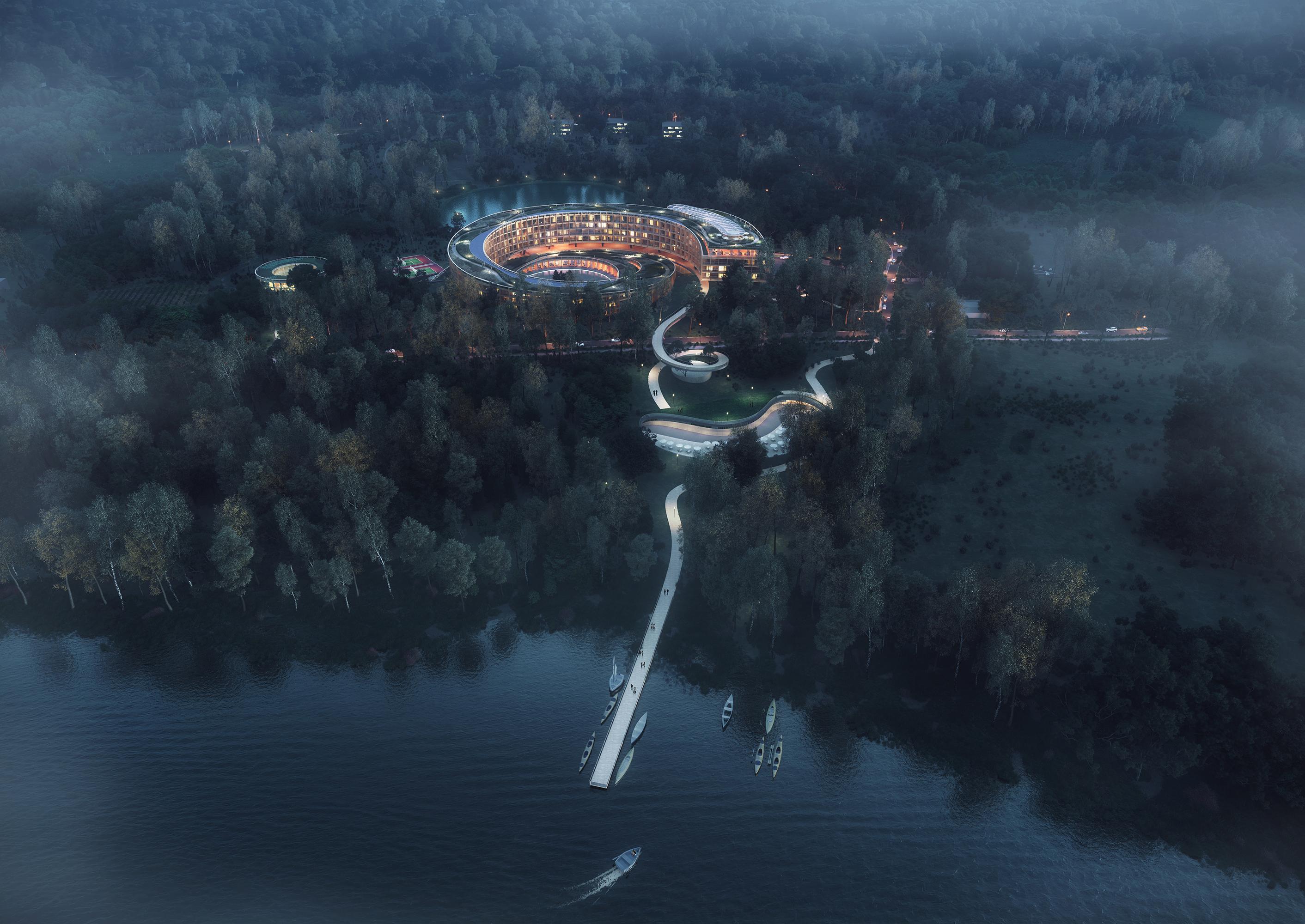 Lakeside ResortMalente, DeutschlandIn der Holsteinischen Schweiz plant Hadi Teherani ein Leuchtturmvorhaben für den Binnenlandtourismus Schleswig-Holsteins, welches durch seine herausragende Lage mit Blick auf gleichzeitig zwei Seen, der einzigartigen und nachhaltigen Architektur, einem der größten Hotel Spa- und Wellnessbereiche des Landes, einer vielfältigen Gastronomie u.a. am Wasser gelegen, großzügigen Park- und Uferanlagen sowie zahlreichen Freizeit- und Ausflugsmöglichkeiten bestechen und mit seiner Strahlkraft die Öffentlichkeit auch über die Grenzen Schleswig-Holsteins hinaus erreichen soll.
