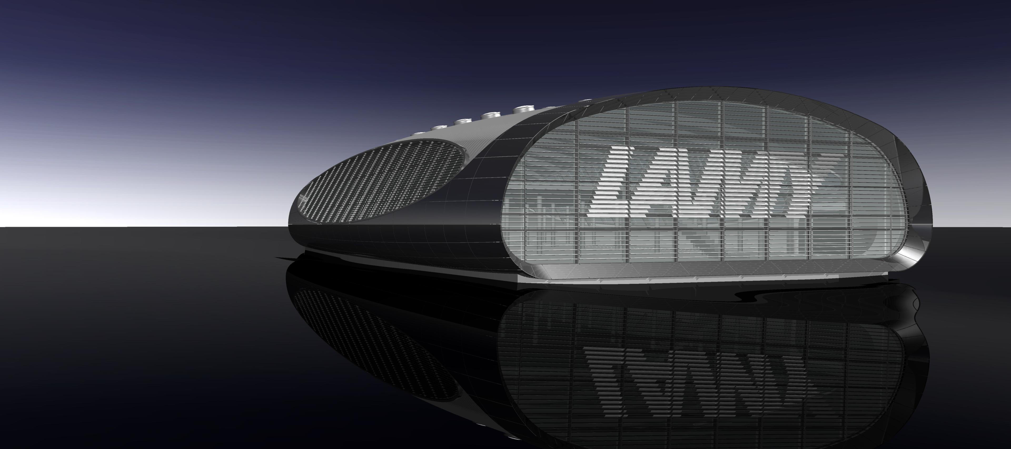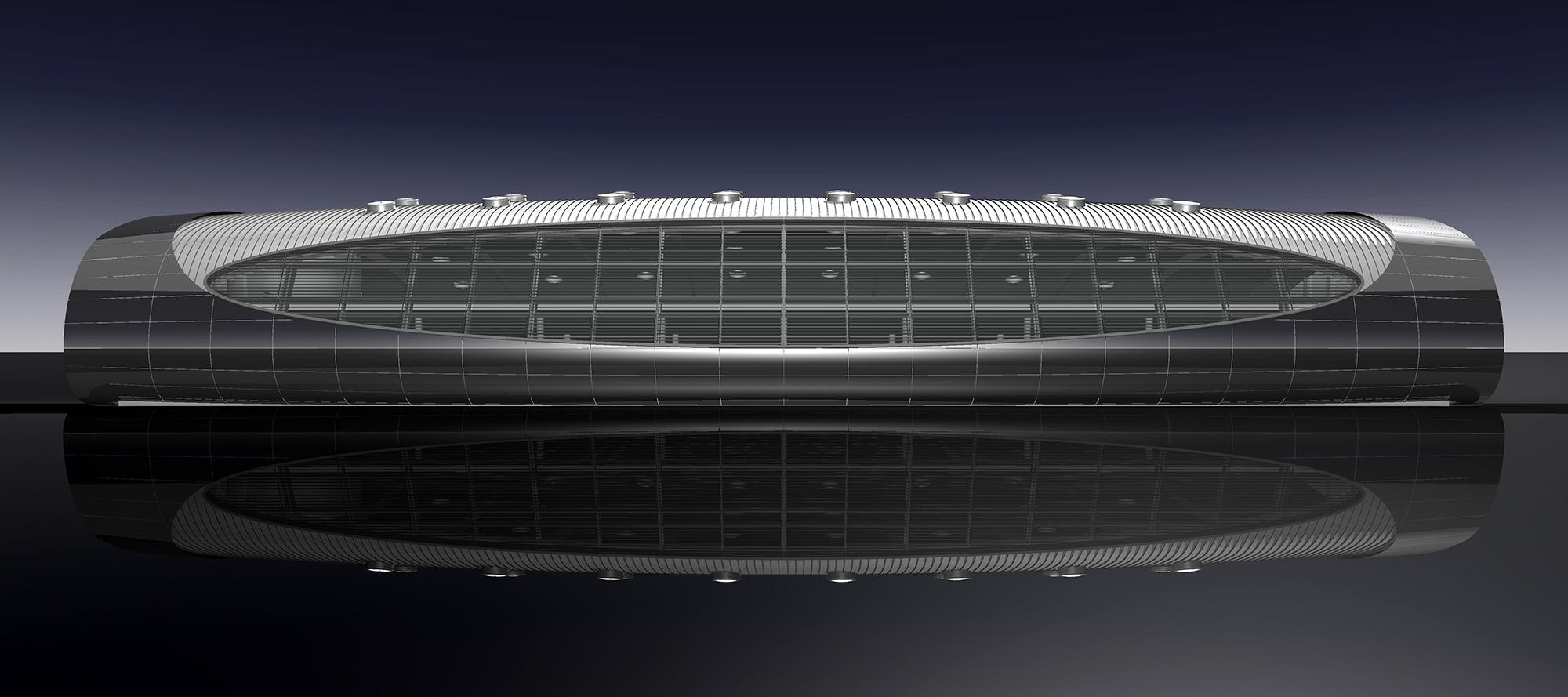 Das bestehende Firmenareal wird mit dem jetzt geplanten „Verteilerzentrum Europa“ im Westen erweitert. Das röhrenförmige Gebäude ist mit seiner Länge von ca. 62 m Ost-West orientiert; als eigenständige Großform ist es freistehend auf dem Grundstück positioniert und dockt nur im Osten mittels eines zurückgenommen Überganges an den Bestand Bauteil VI an. Der direkte Bereich um das Gebäude ist ellipsenförmig abgegraben, um die Röhrenform über dem Grundstück schweben zu lassen.
