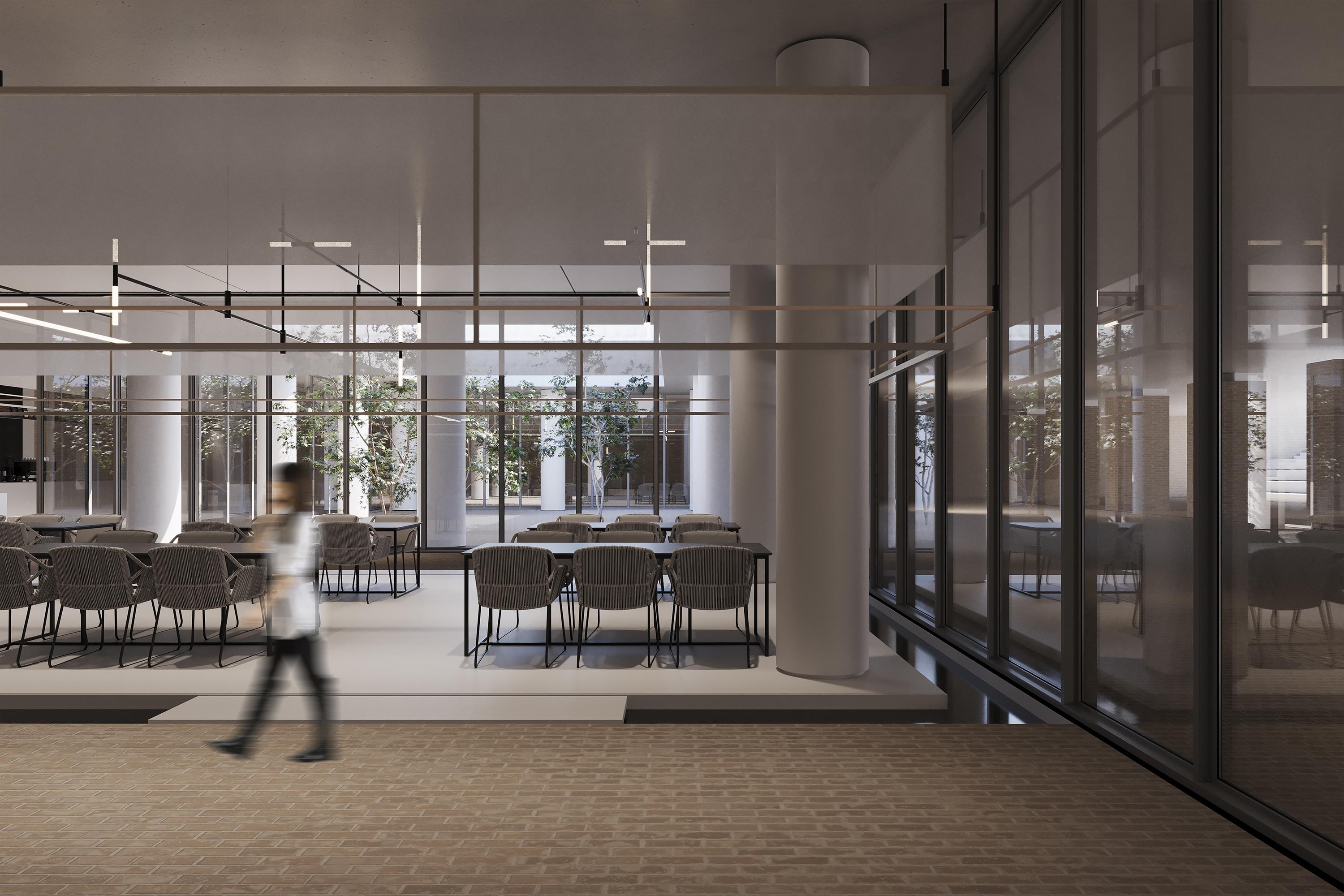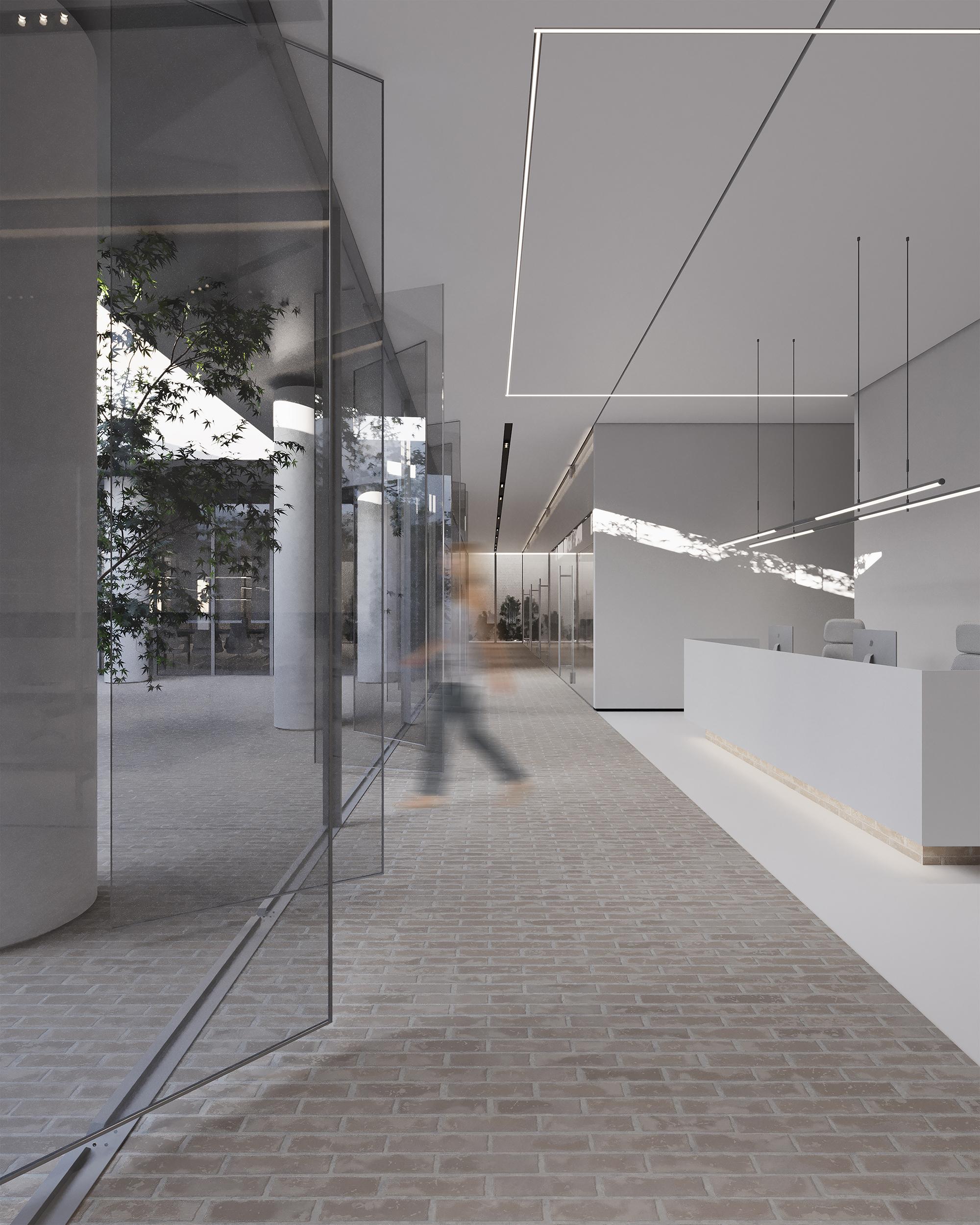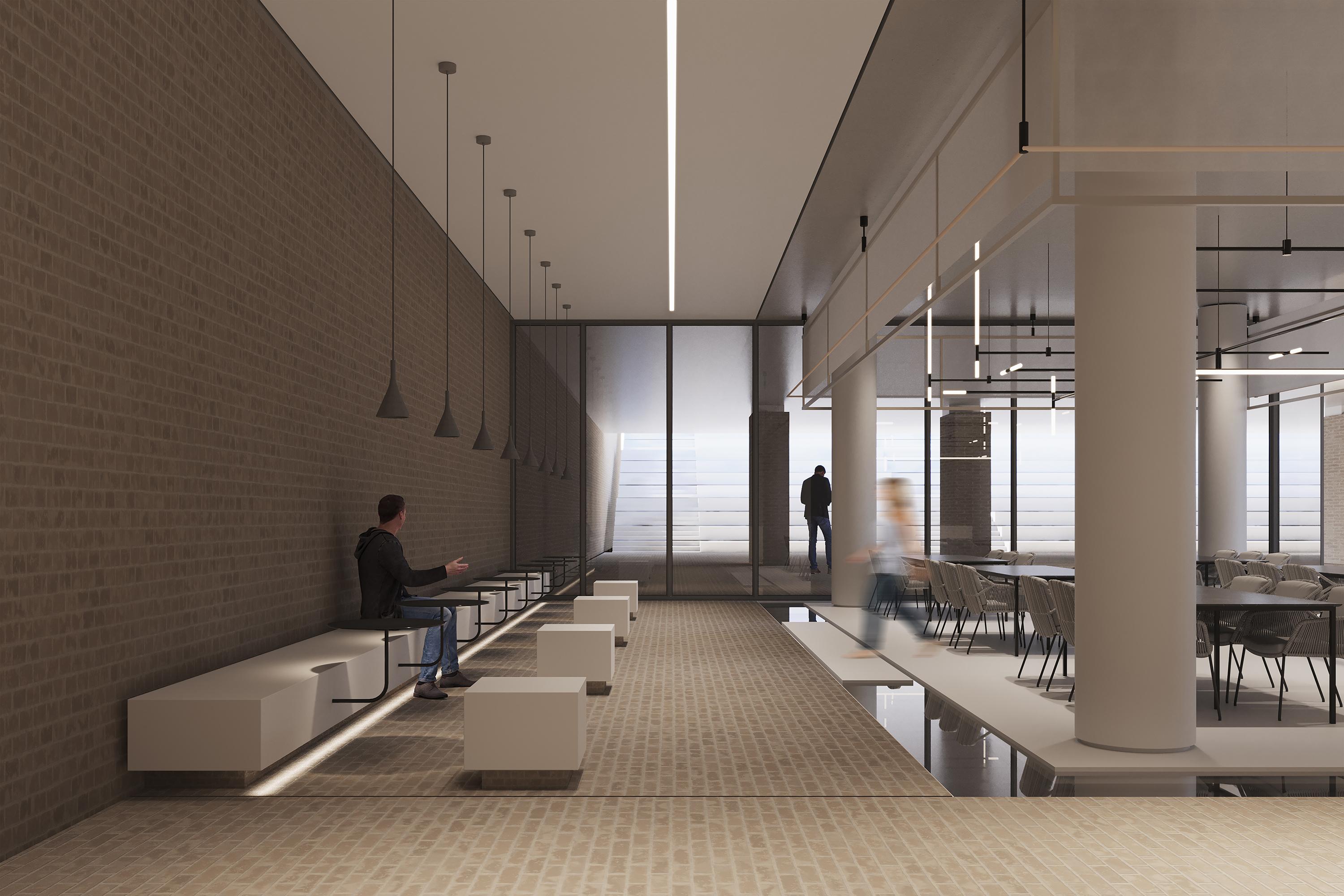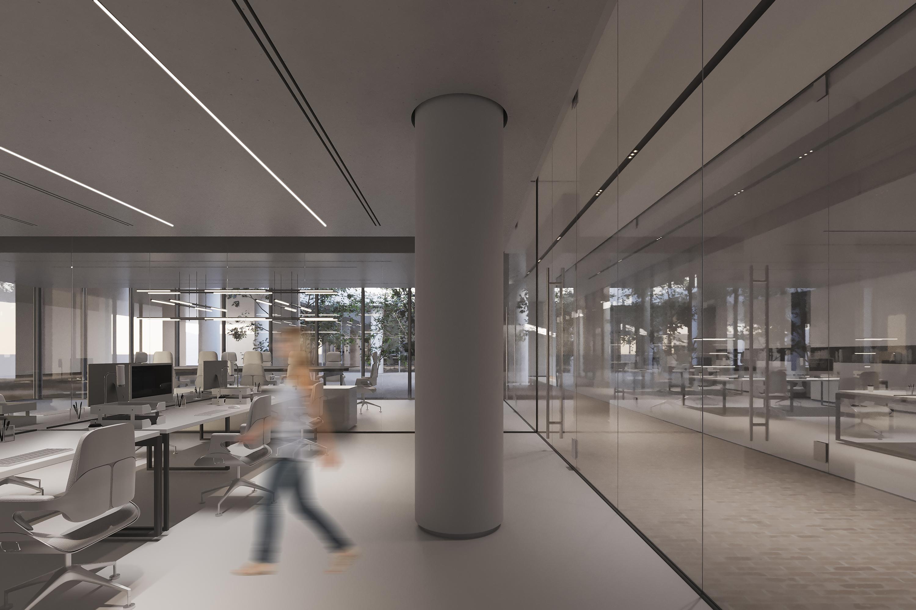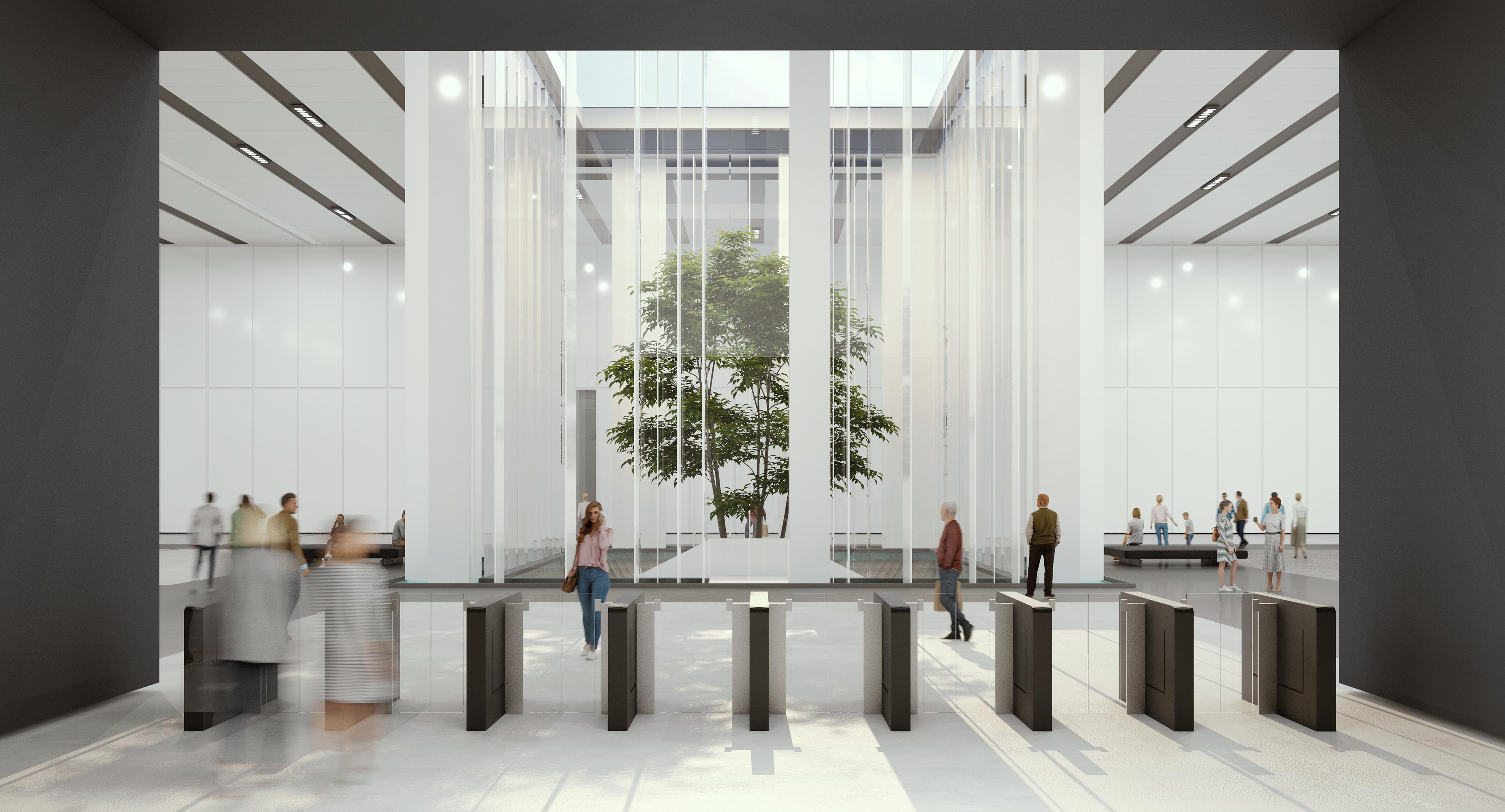 The core of the general masterplan is comprised by two new exhibition halls, with the central entrance hall directly accessible from the master boulevard located southeast of the existing trade fair hall. Located only footsteps away from the central boulevard and attached to the northern hall is a shaded outdoor cinema, a 25-meter, cantilever-roofed plaza for around 400 viewers and guests. The outer plaza grants access to the subterranean level with its embedded office and restaurant facilities via large, inviting staircases. The central entrance hall on the ground-floor level with reception desk, wardrobes and service facilities provides access to the 7000 m² and 5000 m² exhibition halls. This ensemble of exhibition halls has been designed while taking international standards into consideration, yet at the same time with regard to its genius loci and architectural background heritage. The demandingly superior engineered structure and MEP systems go hand in hand with its state-of-the-art architecture and interiors. The two 100 m x 50 m and 70 m x 50 m column-free structures provide optimally flexible space for any type of exhibition, trade show or concert. Two central courtyards implemented inside the halls provide naturally shaded daylight access to exhibitions and connect the ground-floor level with the subterranean level both physically and visually.