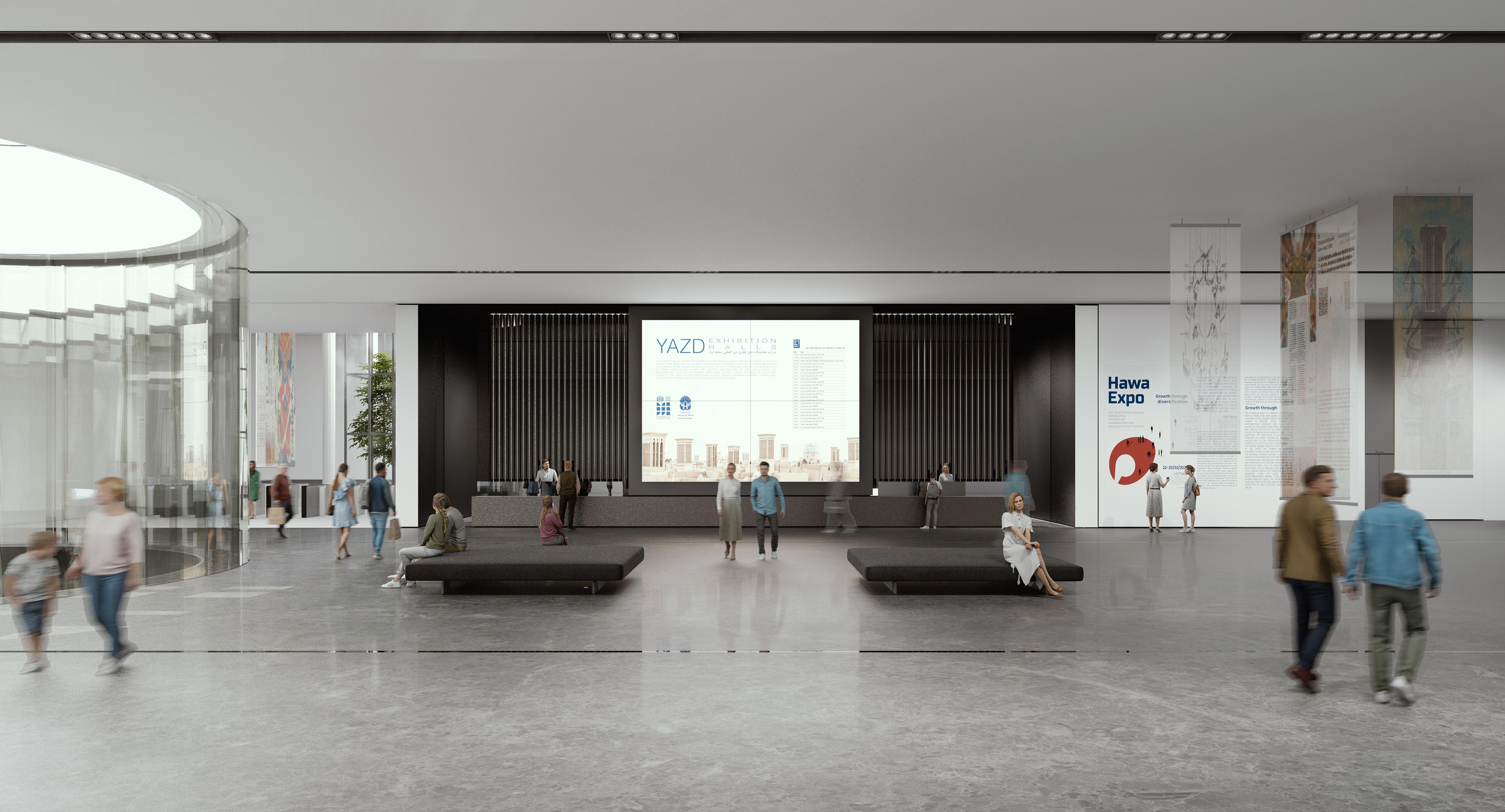 Exhibition, Office, Public Art Spaces, Public Cinema, Restaurant International Trade Fairs Yazd, Iran270 km southeast of Isfahan lies the historical city of Yazd. The capital of this province in Iran bearing the same name has been recognized as a World Heritage Site by UNESCO since 2017. Generations of adaptations to its desert surroundings have imparted Yazd with a unique Persian architecture exemplified by its nickname, the “city of windcatchers” (Shahr-e Badgirha). The legacy also includes its well-known Zoroastrian fire temples, cisterns (ab anbars), underground channels (qanats), icehouses (yakhchals), Persian handicrafts, handwoven cloth (Persian termeh) and silk weaving. South of the historical center of Yazd near the famous Zoroastrian “Towers of Silence”, the new design masterplan for Yazd Expo City is simultaneously the idea to elevate Yazd to a different level of culture, trade and commerce.