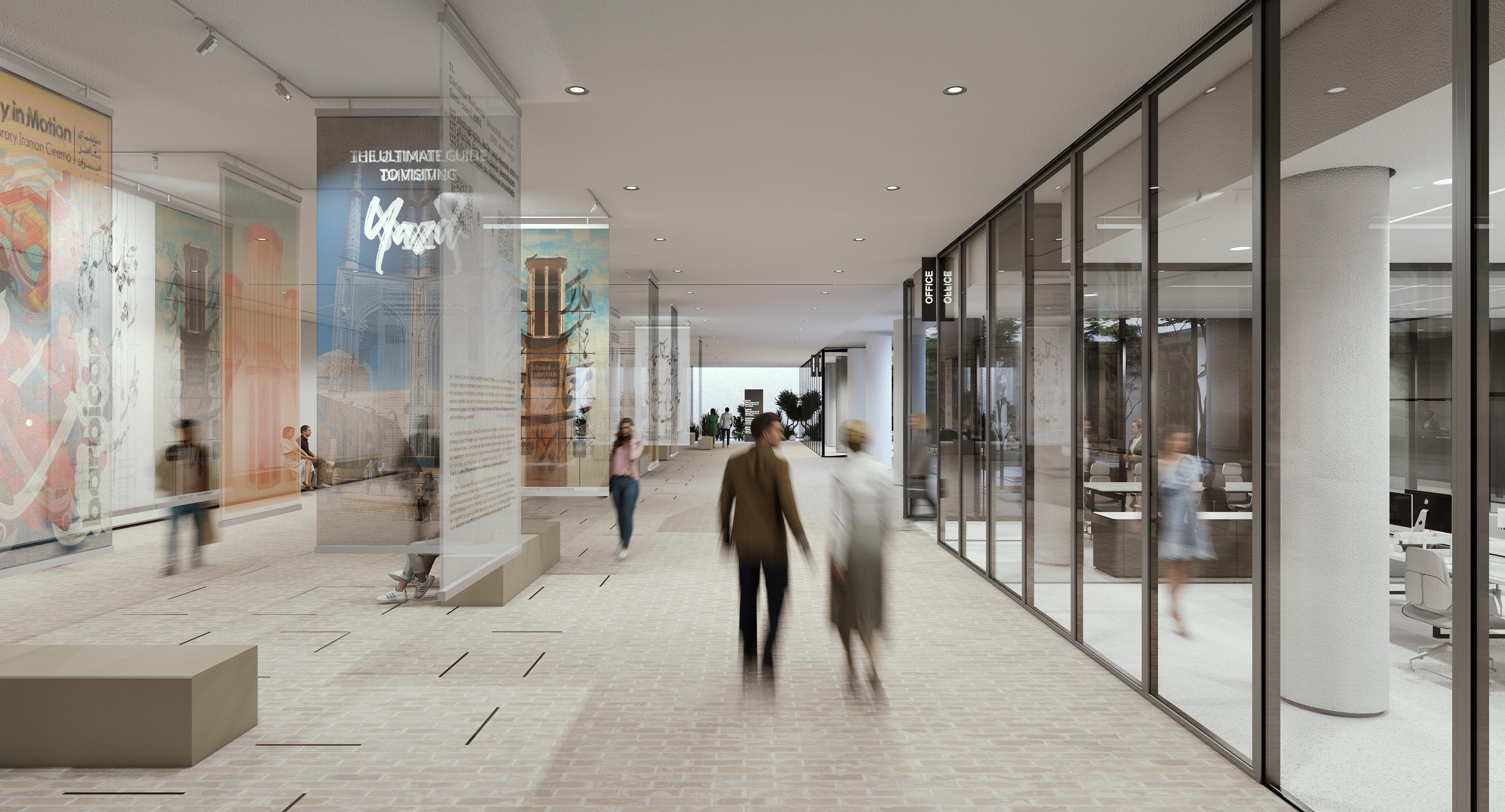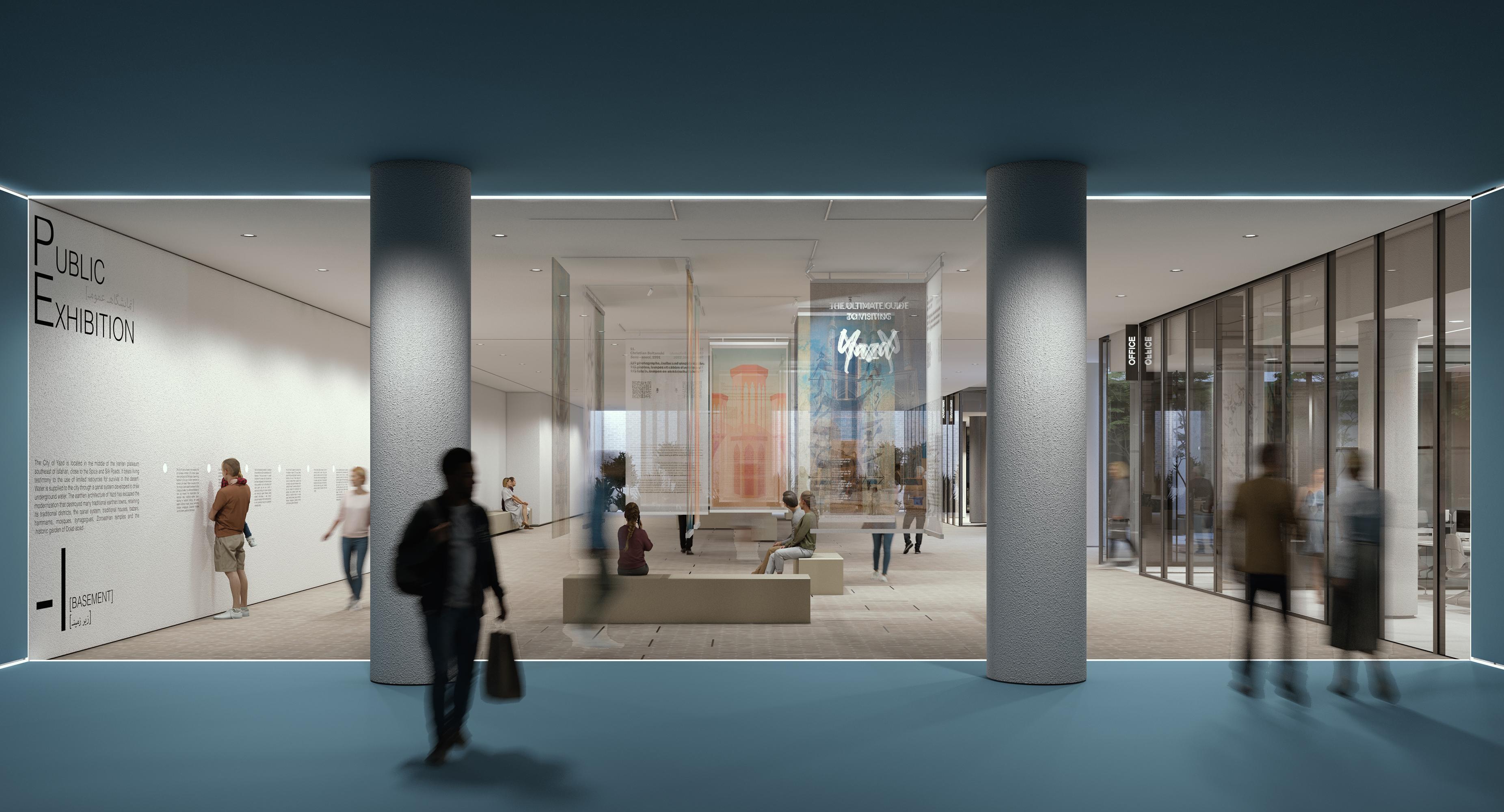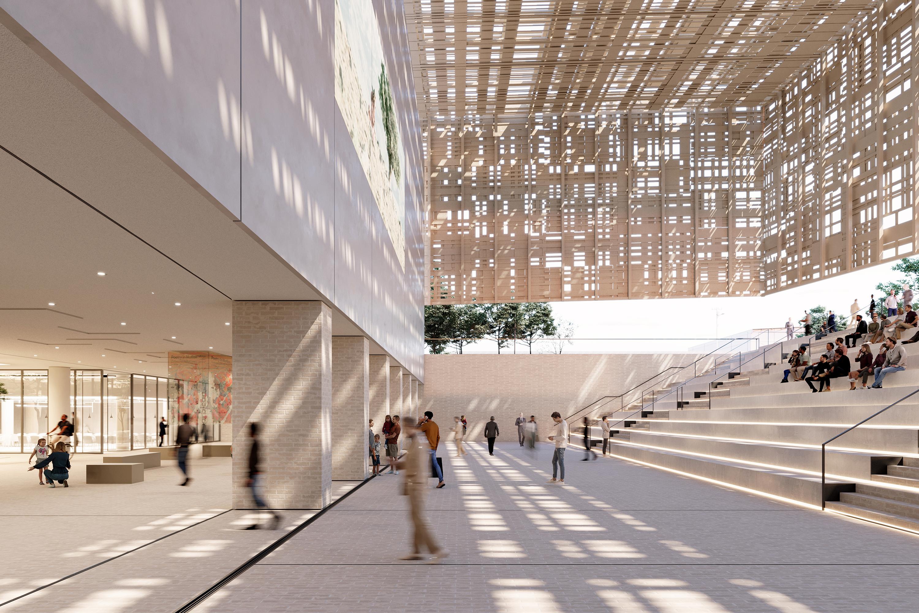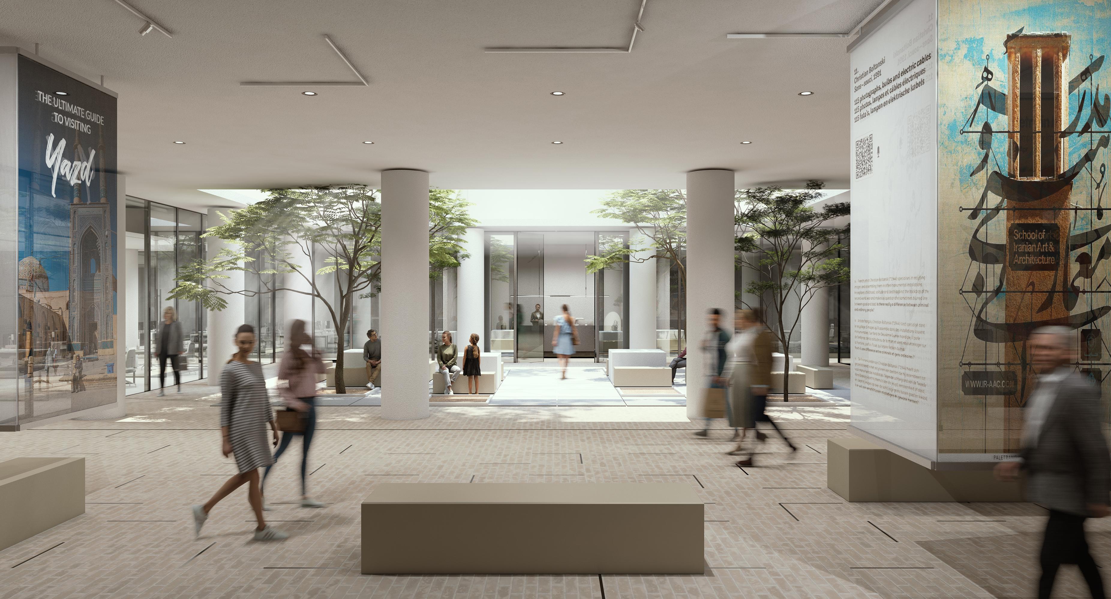 The façade of the exhibition halls refers to Yazd’s heritage. Its layers utilize the metaphor of woven fabrics to generate a sustainable skin. The subterranean level acts as an interface between the western and eastern parts of the masterplan, and appealingly surprises with its modern but, at the same time, locally inspired architecture. The centrally located water basin with a rain curtain and its modern interpretation of a windcatcher, the connecting entrance hall and subterranean level all provide for natural ventilation and a moisture-cooled ambience. Office and restaurant spaces are located around the equally naturally ventilated green courtyards shaded using ambient daylight. They are situated vis-à-vis the publicly accessible art spaces that provide public gathering places for the people of Yazd and its visitors. Construction has begun.